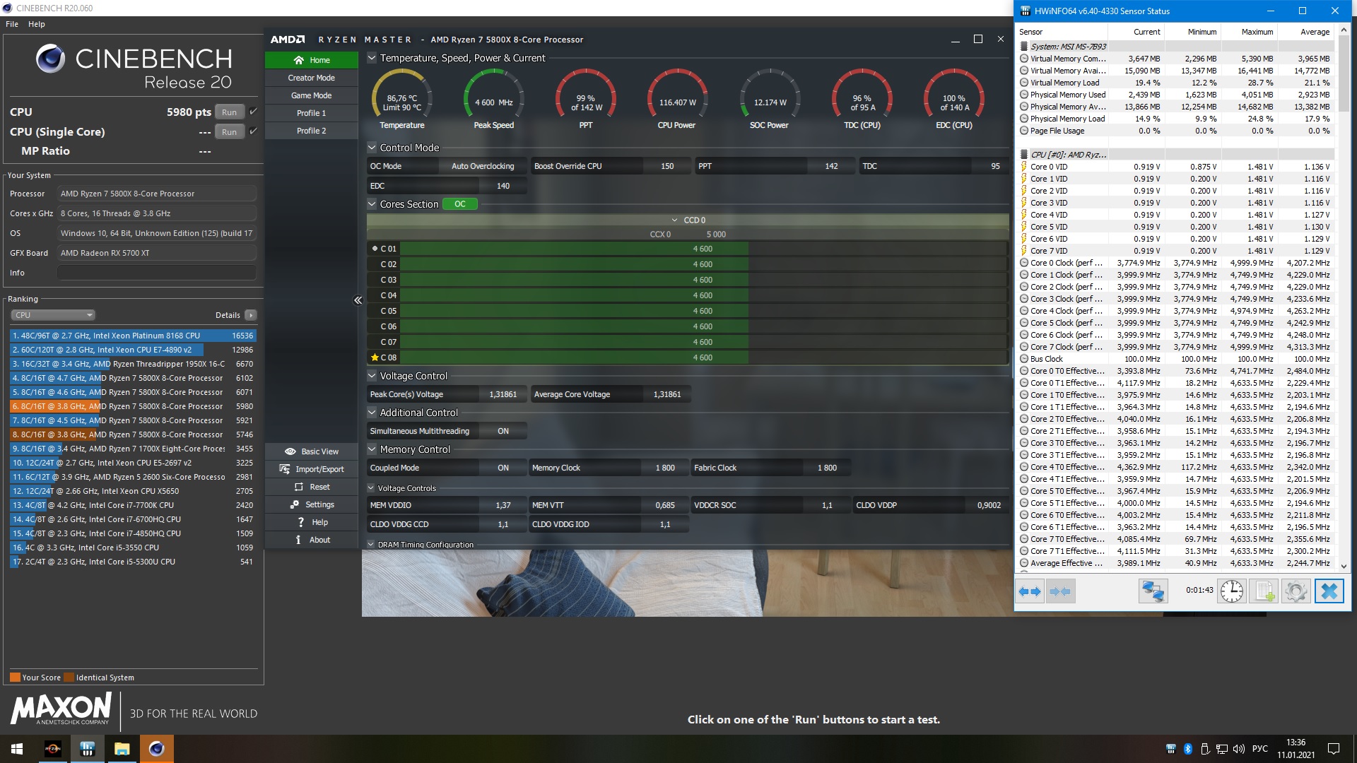 _sens_ еще учтите что у меня проц охлаждается водоблоком, а у вас стоит NH-D15s. Он у меня был и проц 5800х с ним не очень работал. Поэтому не ждите что многопоток будет большим на воздухе. Всей 5000-й линейке кроме 5600х желательна СЖО для охлаждения.
