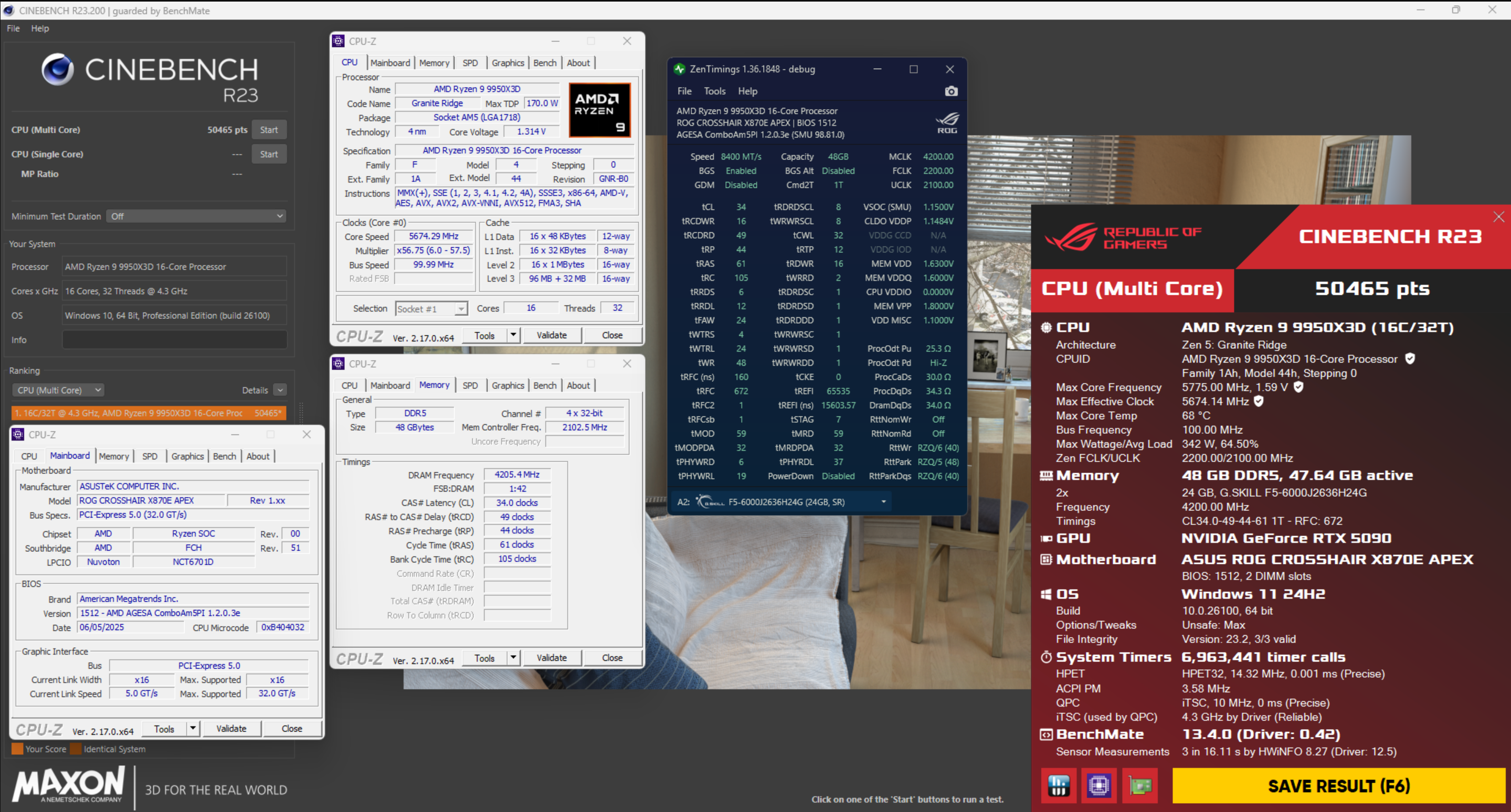 Я скидывал же результат людей, у которых 50000+ на 9950X3D. Это вполне реально достижимо. Просто лично я в этом смысла не вижу. Как я уже говорил, сколько 9800X3D не гони, в Синебенче он до уровня даже стокового и задушенного лимитом 16-ядерника, у которого "всего 44-45к", не доберётся. Где легковушка, а где внедорожник.
