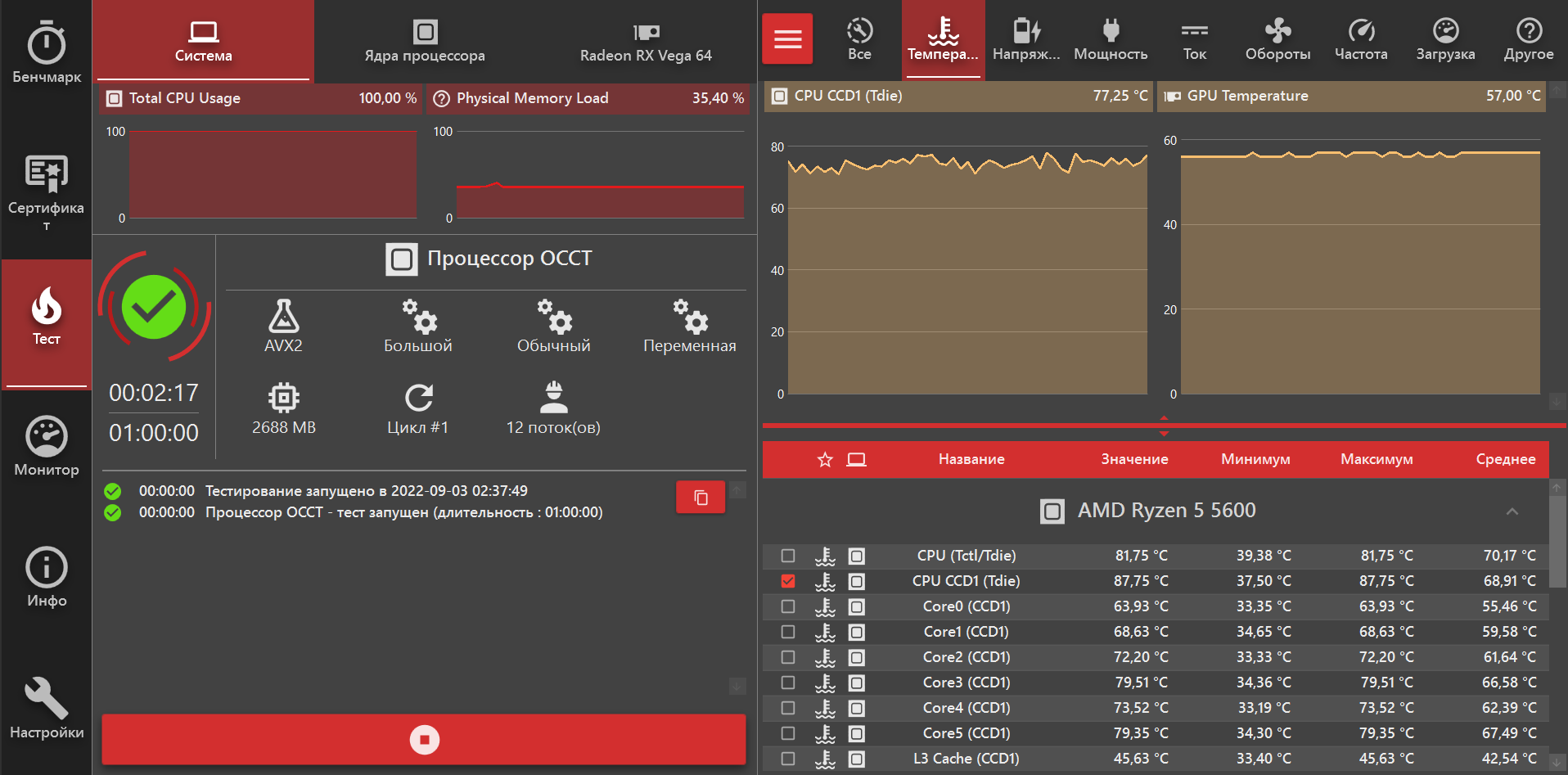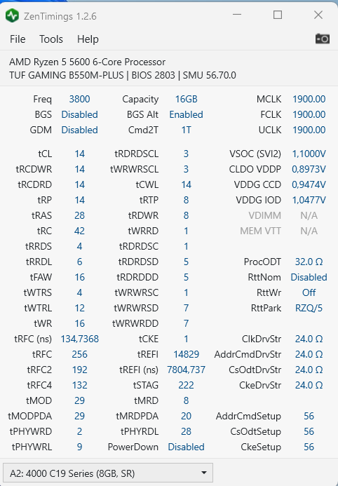 Что касается частоты процессора, проводил исследование в игре csgo (она использует всего 3 ядра): - на частоте 4.5ггц 1.22в получилось 605 фпс - на частоте 4.6ггц 1.26в получилось 642 фпс - на частоте 4.7ггц 1.33в получилось 650 фпс Стало понятно, что выше 4.6ггц пошел кукурузный разгон без существенной прибавки в производительности. В стресс тестах на частоте 4.7ггц при напруге 1.33в после минуты вылезало куча ошибок, не хватало вольтажа, но проблема заключалась еще и в том, что с напряжением 1.3в и выше проц моментально прогревался до 90 градусов и срабатывала защита. Было принято решение остаться на 4.6ггц. Пока не стал заморачиваться с курвой и банально зафиксировал частоту. Возможно с курвой удалось бы в однопоточных тестах получить чуть выше частоты и результаты. Хотелось еще проэксперементировать с частотой FCLK и выявить ее влияние в играх, но как я уже писал ранее тестирование с частотой выше 1933 не имело смысла, так как я получал много whea ошибок и результаты в играх оказались бы некорректными. С процессором в комплекте была приобретена новая материнка asus tuf gaming b550m-plus. На ней использовалась daisy chain топология оперативной памяти. Но в разгоне памяти новая материнка показала себя хуже старой msi b450 gaming plus max. Если старая спокойно давала разогнать рам до 3800 cl 14 14 14 14 28 42 с напругой 1.52в, то новая позволила взять эту же частоту с таким же первичными, вторичным таймингами, но уже с напругой 1.54в. Единственный плюс при разгоне памяти заключался в том, что асус позволил выставить ClkDrvStr на 24ом, в то время, как МСИ без ошибок работал только на 60ом. Как я выяснил по тестами ClkDrvStr оказывал небольшое влияние (в пределах 1нс) на задержку памяти в тесте AIDA64 и чем ниже этот параметр, тем лучше. На старом проце 3500Х я немножко поиздевался над оперативкой и пытался заставить ее работать с частотой 3800 и таймингами 13-13-13-13 26 39 cr1. Это удалось при напряжении 1.72в, но в AIDA64 не задержка памяти не снизилась, а скорость записи и чтения возросла на сотую процента. Это не остановило меня и докрутив напругу до 1.95в и снизив тайминги до 12 12 12 12 24 36 провел еще один тест, AIDA опять не показала никакого прироста. По итогам тестов решил остаться на 3800cl14. По итогу разгона камня остался доволен, единственное, что хотелось бы взять fclk 2000. Теперь вопрос к опытным людям по разгону ядер, 4.6ггц при 1.26в по всем ядрам можно считать нормальным процессором или же это неудачный образец?