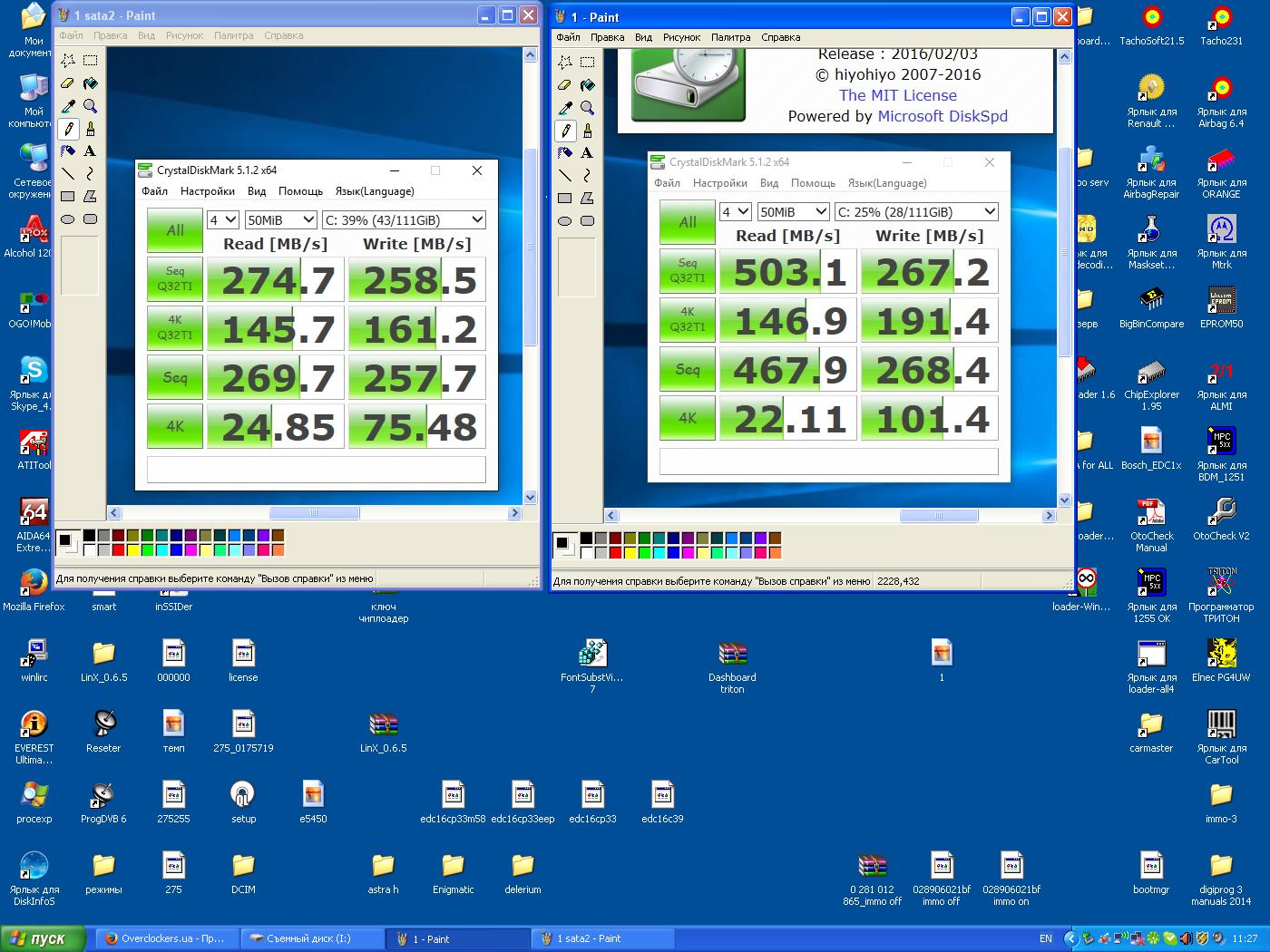 Sabotender я это знаю ,я сыну на 1150 точно такой же купил ,и там запись выше чем у вас на скрине 260 ,скорее всего у меня оба на физонах а они быстрее ..... вот скри н6ы есть на моем на сата 2 и у него на сата3 одинаковые ссд