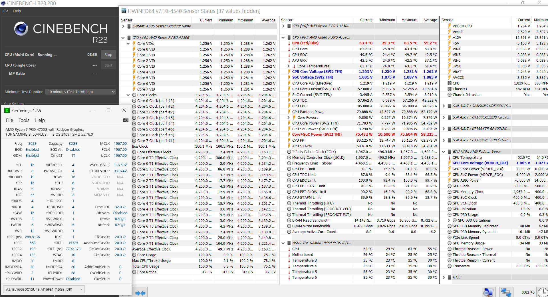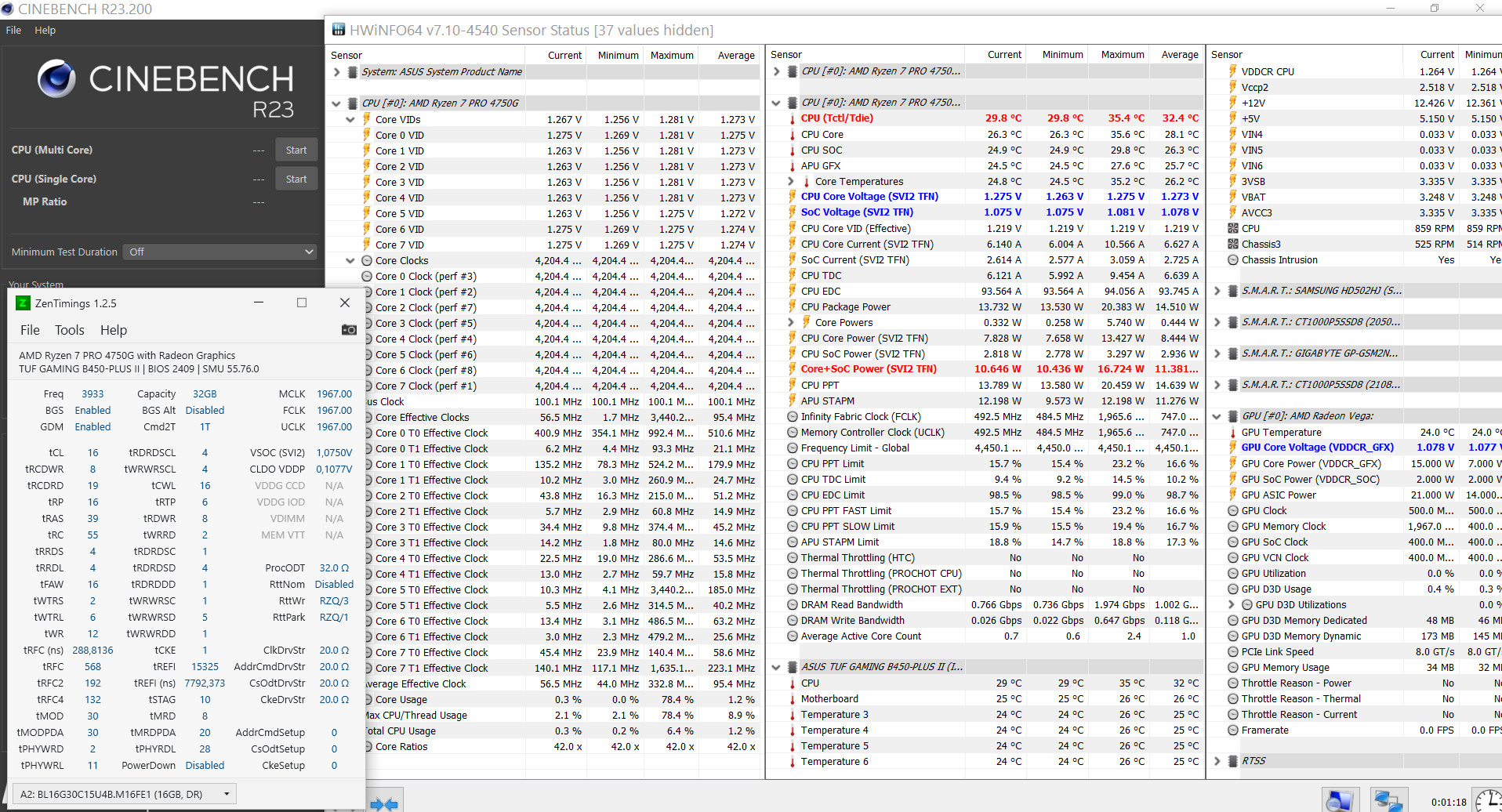 5600G ASUS TUF Gaming B450-PLUS II Crucial Ballistix 32GB (16GBx2) BL2K16G32C16U4RL двухранг