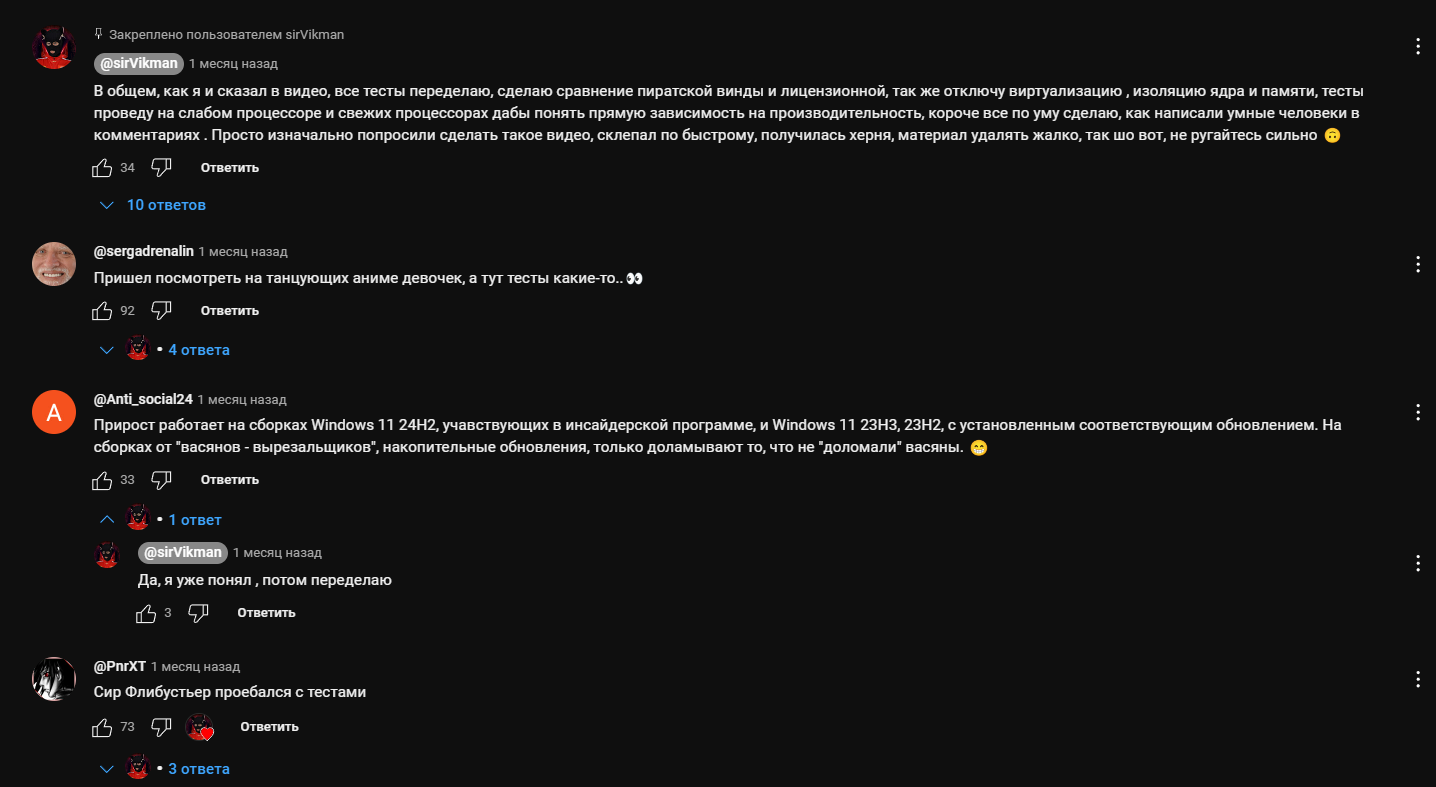 Магистр_Мёда ну я б на твоём месте так не хаил бы хардвар унбоксед канал с миллионом+ подписчиков, уже далеко не первый год существующий так же они контактируют со Стивом Берком, который канал геймернексус ведет, у которого 2 млн+ подписчиков да и резалты у них плюс минус контрятся с виндой 24h2 и бустом производительности вопрос конечно сложный и открытый конечно лайнус один раз уже пытался похаить обоих, за что сильно поплатился: https://habr.com/ru/news/755198/ https://dtf.ru/u/31917-kaptoiiika/20409 ... areunboxed