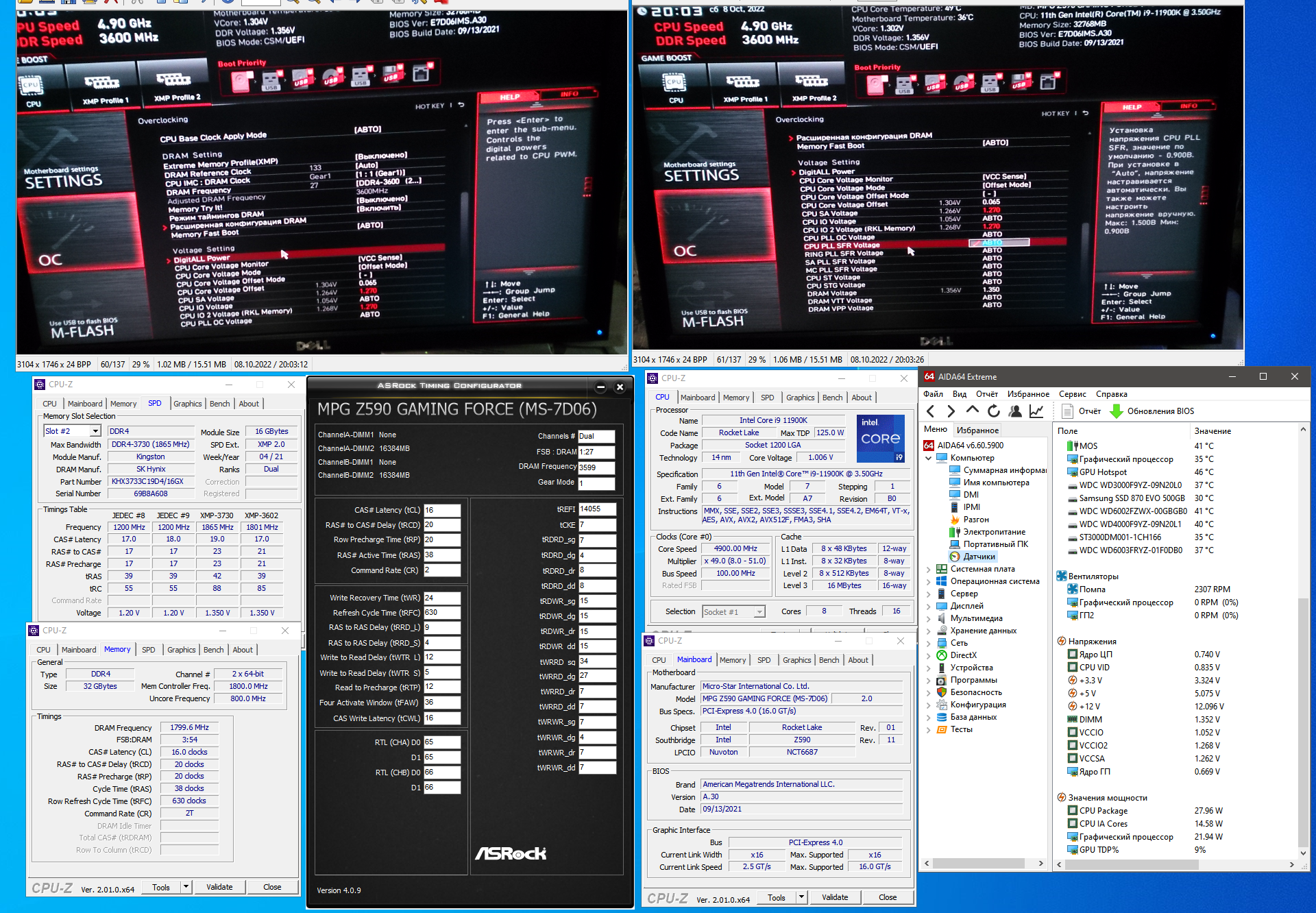 Если не трудно, то можешь сфоткать экран с сопротивлениями в BIOS для ориентира? У меня на плате MSI Z590 Unify память не едет выше 3600 Мгц двуранк в Gear 1 на Samsung B-Die. Система не проходит POST на частоте выше 3600 Мгц с любым вольтажом SA, IO2, DRAM и конскими таймингами. Заведомо известно, что сама память и контроллер памяти ЦП не ограничивают разгон на 3600 Мгц (проверено с двумя другими Z590 материнками от ASUS и Aorus). С парнем переписывался одним, у него с Rocket Lake на Z490 ACE от MSI тоже не гонятся 2 двуранка, а 4 одноранка берут частоту выше без проблем. Может тоже в настройках сопротивления дело.