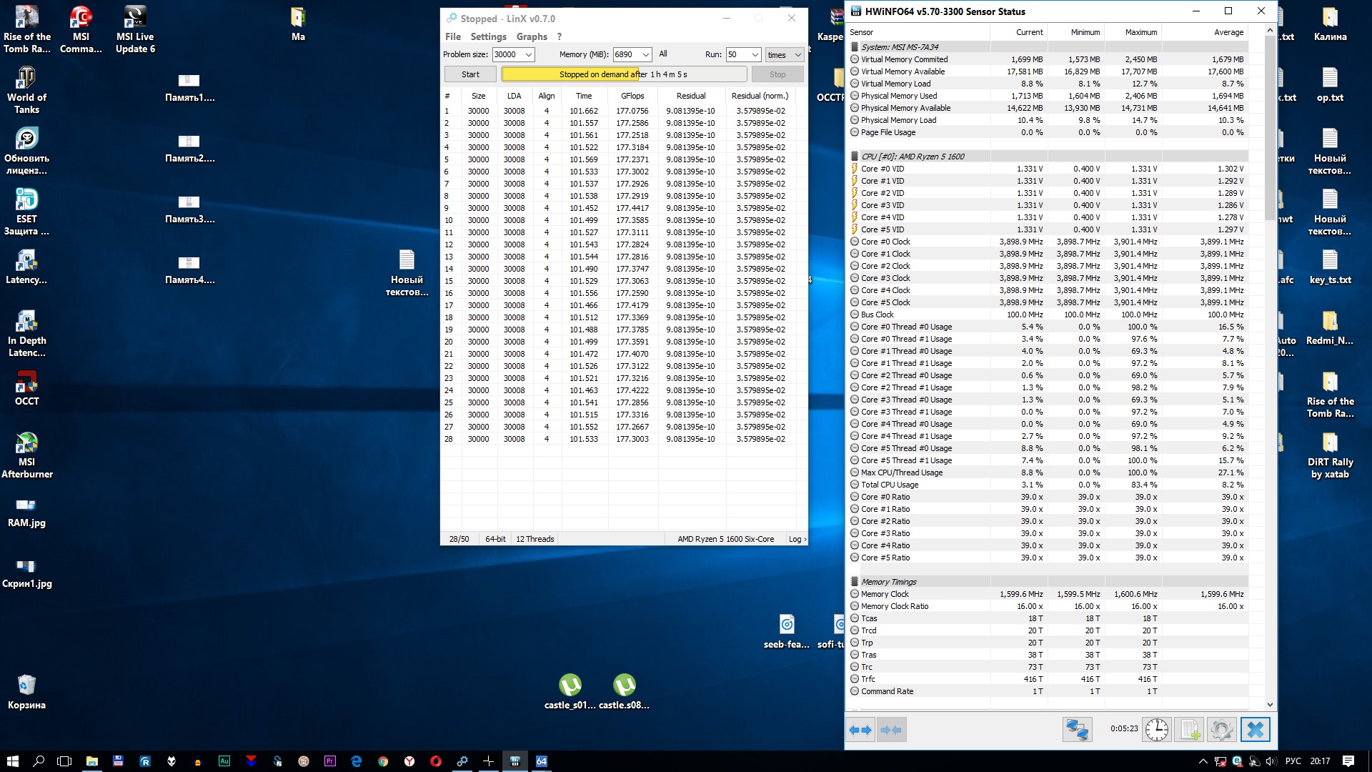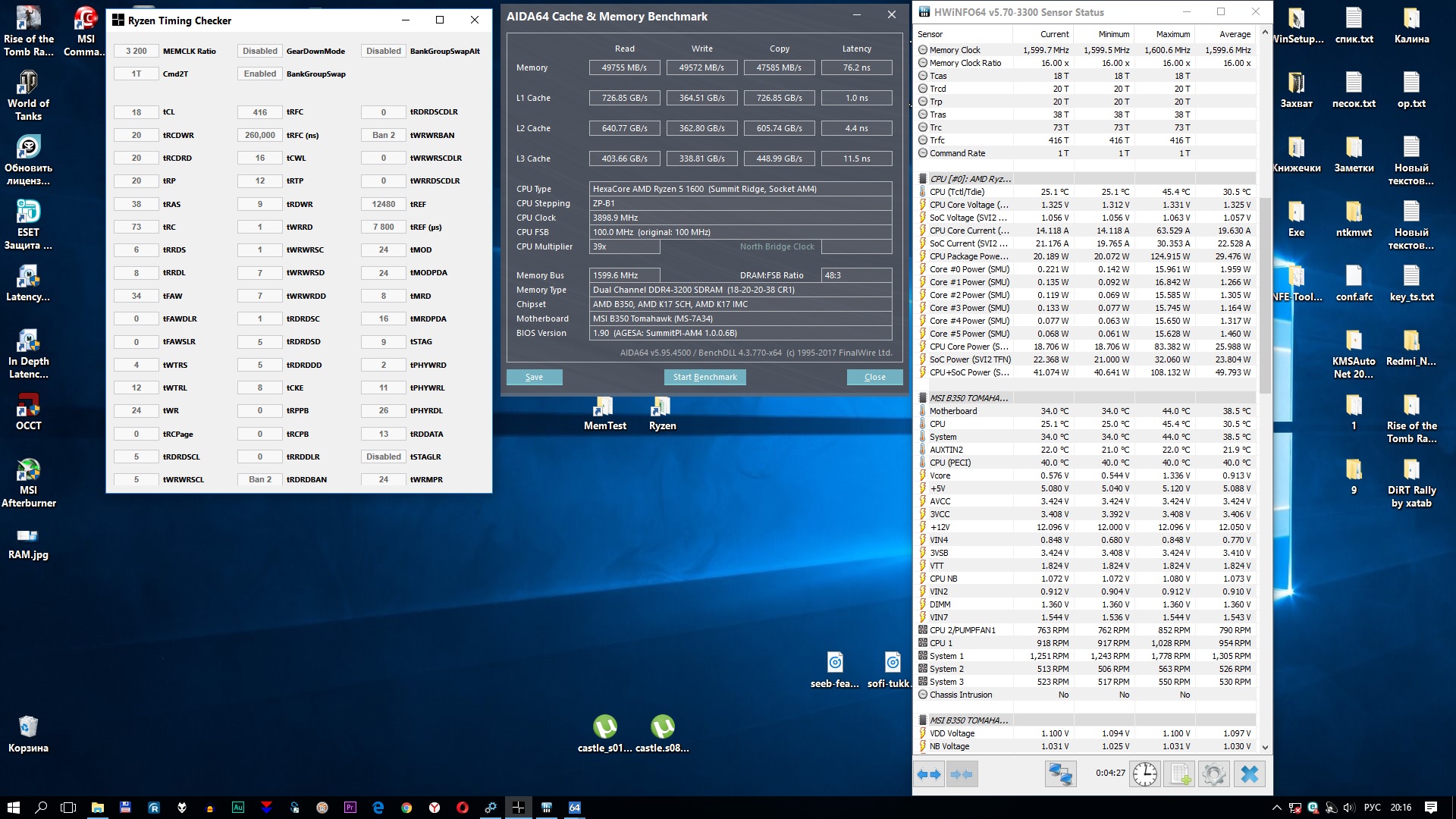 Доброго времени суток. Хочу выразить огромную благодарность людям, которые подсказали направление в оптимизации системы, подходу к тестам. Добился стабильных результатов. CPU 3.9 GHz - 1.3125v LLC3, NB/SOC - 1.075v LLC3, RAM 3200 MHz 1.36v. Перед тестами выдернул шнур интернета, отключил антивирус. В BIOSе отключил Cool’n’Quiet, Spread Spectrum. Результаты тестов на скринах.