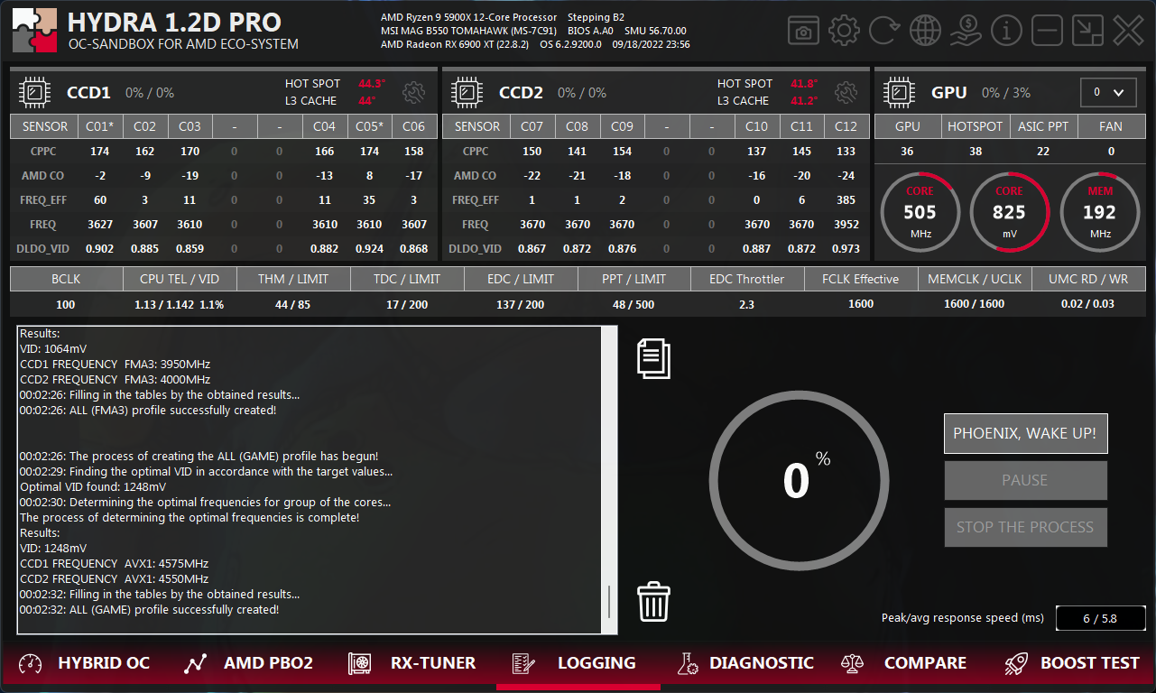 21:42:56: The process of creating the 3T-4T profile has begun! 21:43:11: Finding the optimal VID in accordance with the target values... Optimal VID found: 1397mV 21:43:13: Determining the optimal frequencies for group of the cores... The process of determining the optimal frequencies is complete! Results: VID: 1397mV CCD1 FREQUENCY AVX1: 4625MHz FMA3: 4550MHz 21:43:14: Filling in the tables by the obtained results... 21:43:14: 3T-4T profile successfully created!