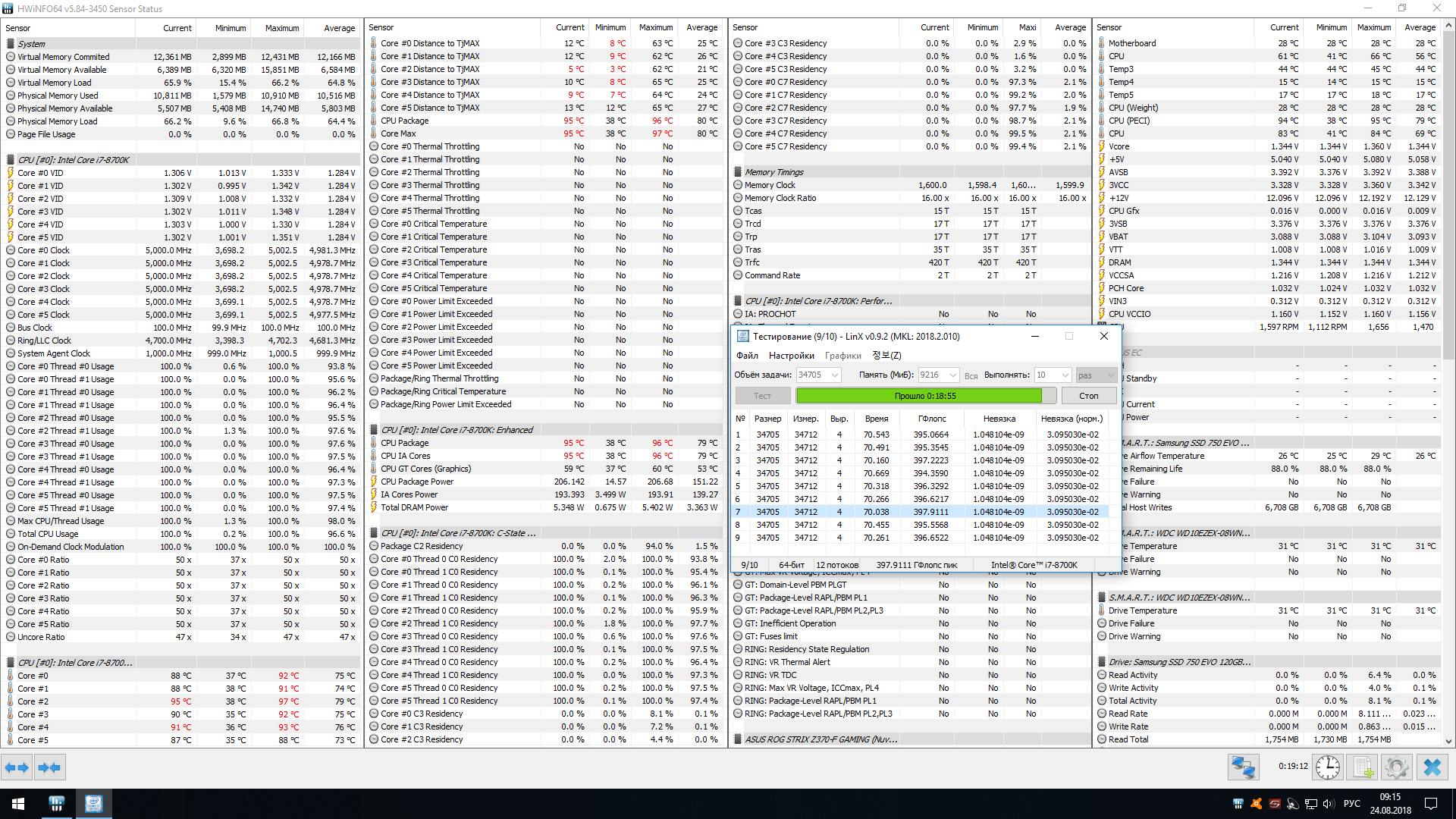 Не под стресс-тестами хватит...в стресс-тестах максимум сток с настроенным напряжением(подобранным) и с памятью по хмр, иначе перегрев гарантирован! garison87 не просто так пострадал callofwild Хозяин-барин! Не отговариваю, просто I9 даёт запас прочности+ припой. 7700К- отличный процессор! Человек, который приобрёл мою систему в культурном шоке от скорости...(честно отговаривал купить ryzen)