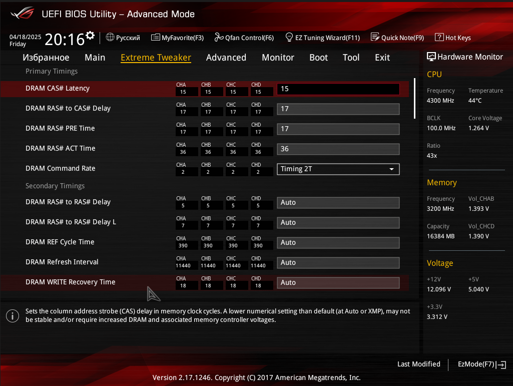 Вот так когда я выставляю первичные тайминги 15-17-17-36 C2