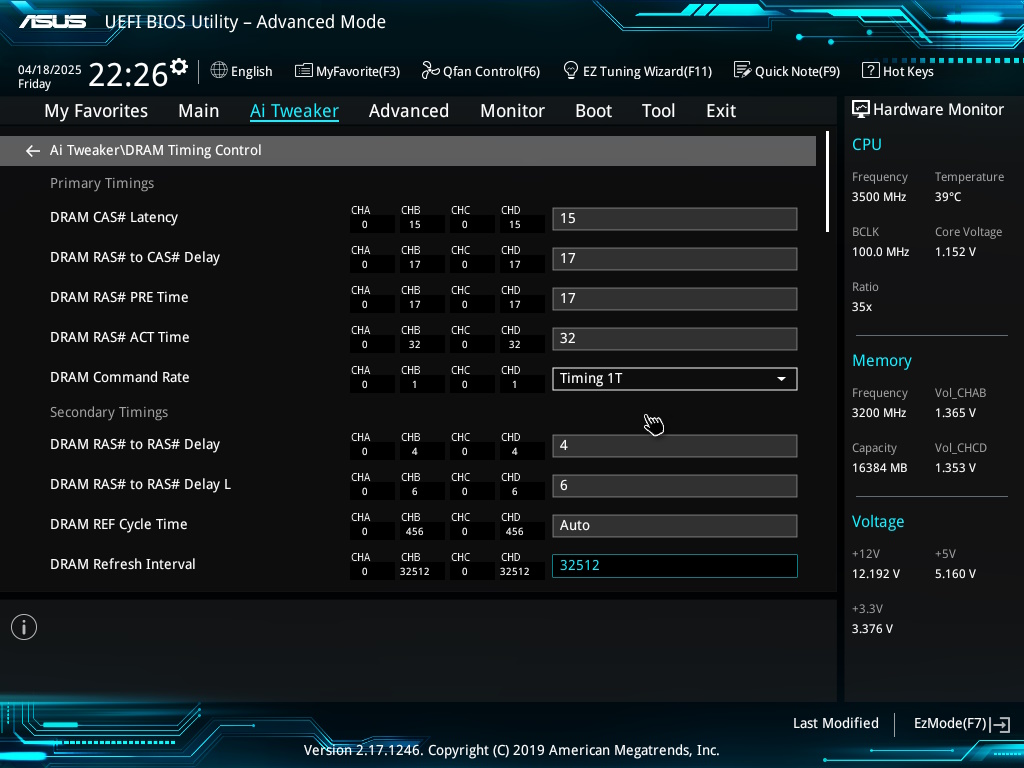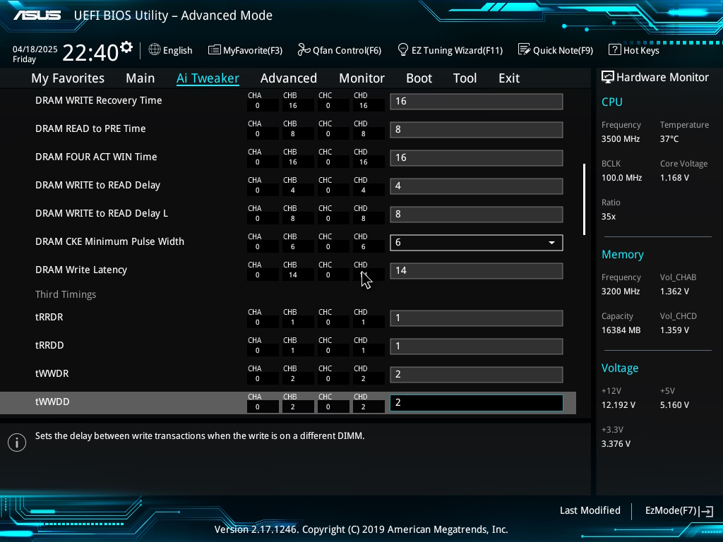 Короче, 1.4 я бы этой памяти не втыкал, ограничился бы 1.36, по таймингам для начала на 3200 с вольтажом 1.36 можешь попробовать 16-18-18-36 1T напрмер, все остальное в авто и прогнать тест на ошибки если поеедет..
