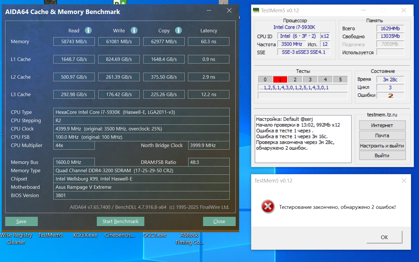 Какая-то чёрная магия. Поставил. Включил. Заработало. Прошло тестмем5. Не поверил результатам, перезагрузился чтобы сделать крины таймингов из биоса. Включил комп поставил тестмем - сыплет ошибками.