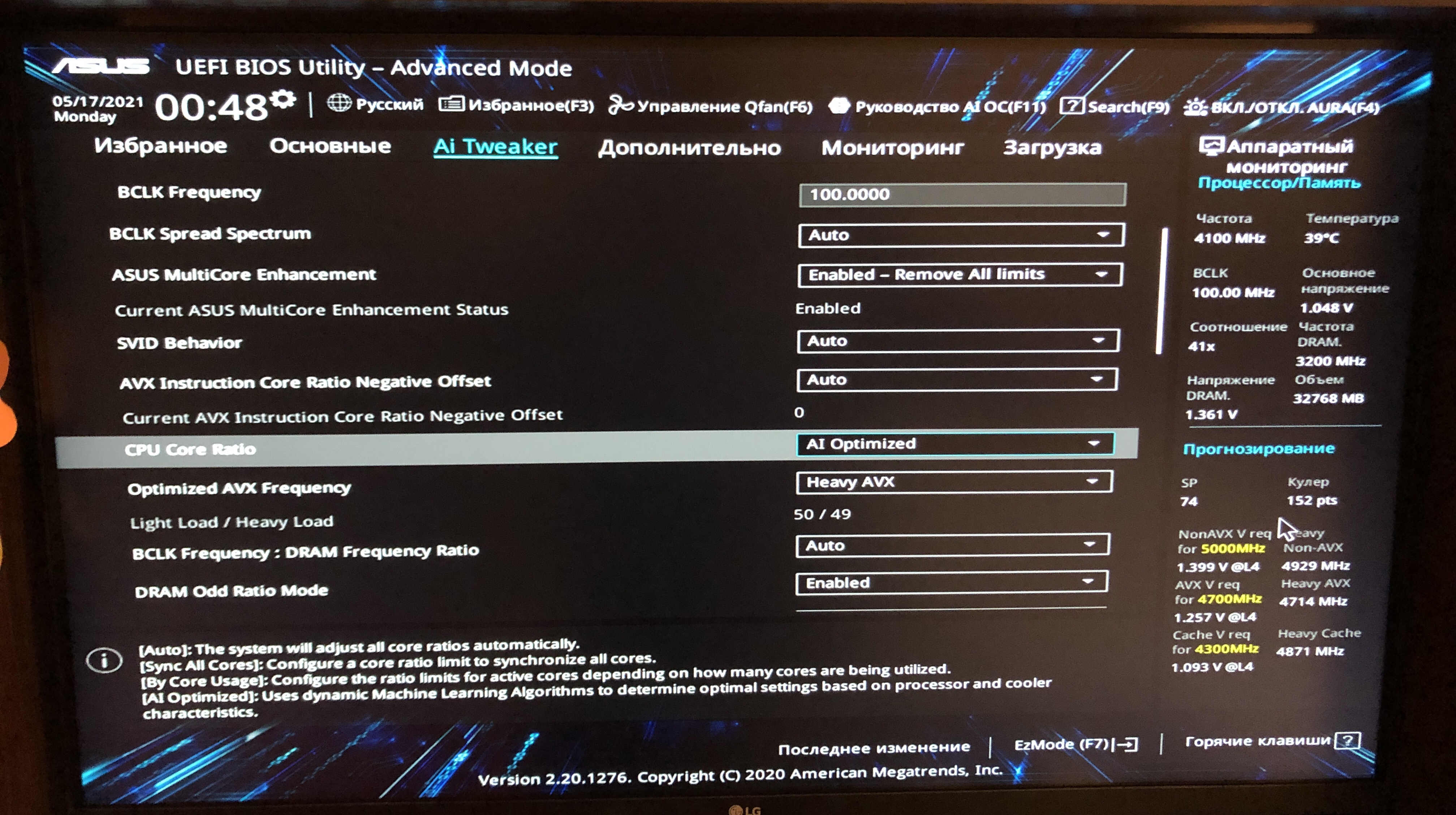 т.е. то что мамка ai opt. предлагает 50/49 (там вроде написано что на avx 4.7) и все на авто (т.Е. казалось бы не должно быть каких то нехваток) и не может это все прайм с авх пройти - это норма? ктсти там есть авх и авх2 - наши проц авх2 вроде не поддерживает - галочку убирать?