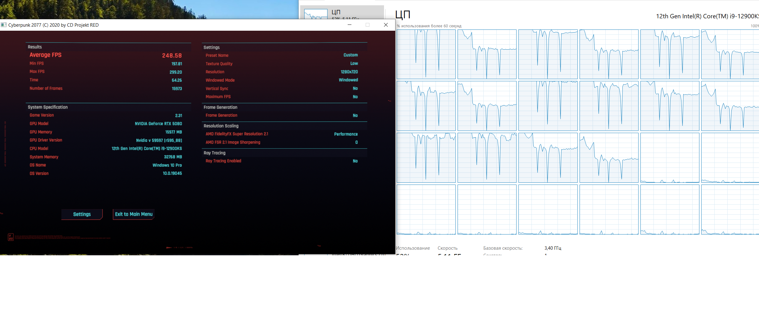 Да нет, я же написал по-быстрому, мне лень было перезагружаться еще ради этого. У алдеров свои могут быть приколы из-за занижения частоты кольцевой шины и кеша. Ну и тут какой-то прям совсем тест памяти. Я бенчил не встроенным тестом, а специально в центр города вылез, где именно ядра грузятся. Там и фпс ниже сотки, а на 12700 временами (когда прямо в толпе ходишь) и вовсе ниже 60 был. Просадка по CPU чувствовалась при включенной трассировке путей. Так что это реальный практический тест еще. А вот эти вот 200+ мне если честно изофалически, в действительности я их увижу только с генератором кадров, который процессором не ограничивается. Хотя может и проведу, если время будет.