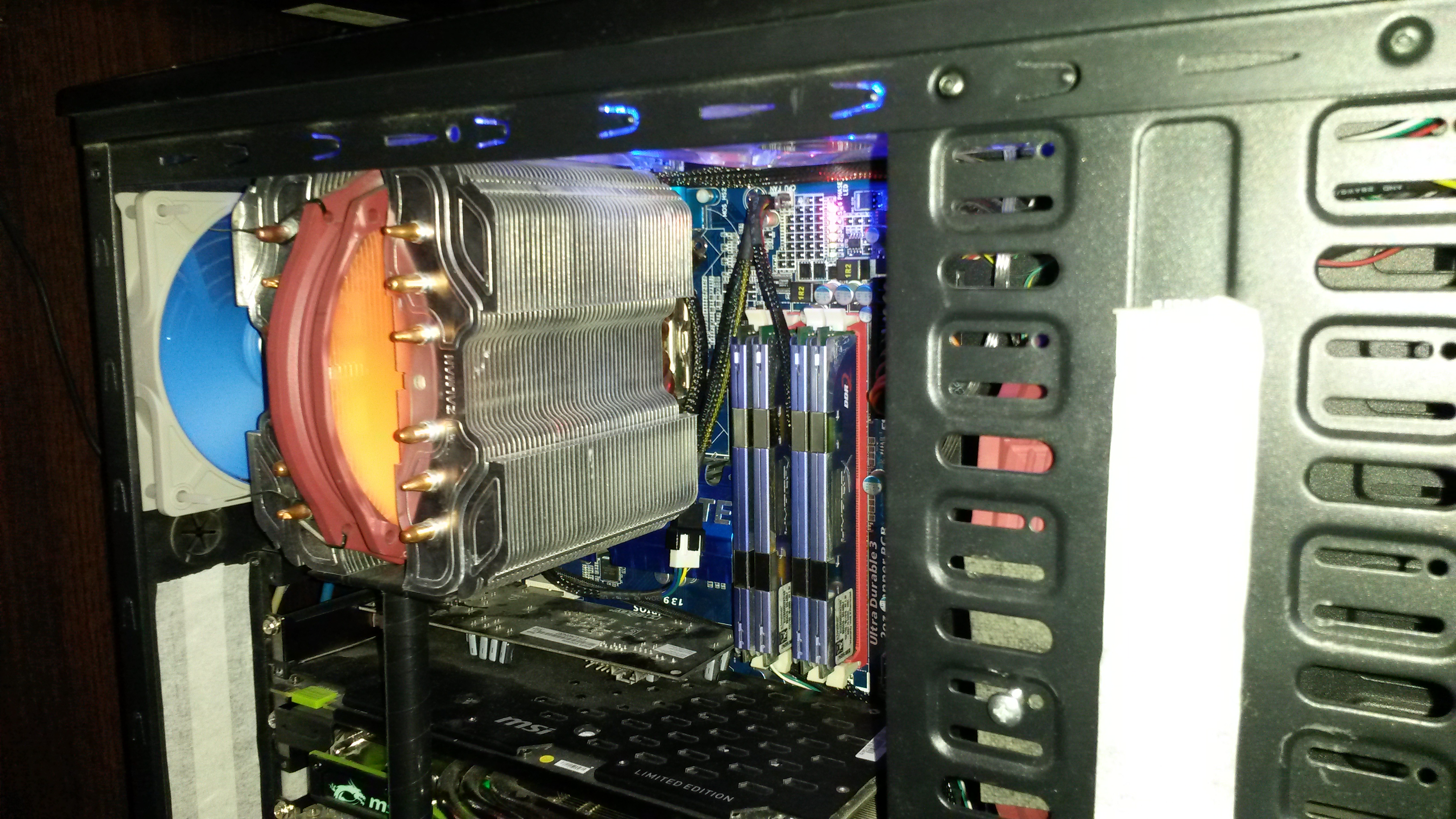 perevertido Вот и мне стремно.... "За бортом" ~26С - есть подозрение на неровность крышки процессора, могу на работе выровнять на притирочном круге. Предыдущий E5450 выравнивал - ~2-3 градуса выиграл. А это мой "холодильник"....
