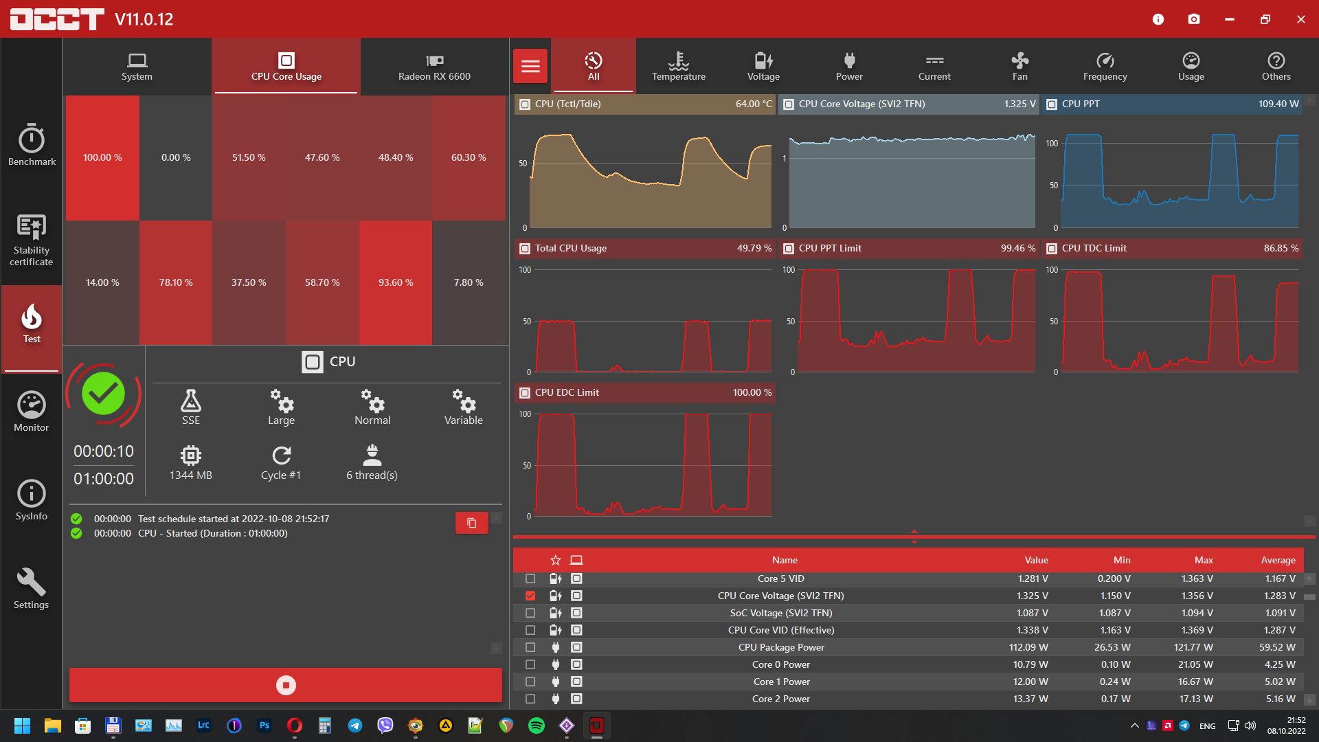 При этом методе игнорируется лимит EDC, лимит TDC настраивается исходя из возможностей VRM, какой ток в амперах материнская плата может максимально выдать не перегревая VRM, лимит PPT это максимальное потребление процессора, особенно актуально если система охлаждения очень инертная. 5900X/5950X упрутся в температурный лимит в 90°С на самом горячем CCD, 5600X/5800X в 95°С, эти значения можно уменьшить при помощи настройки Platform Thermal Throttle Limit. Последние 5°С до этого лимита дают приличные пенальти к бусту.
