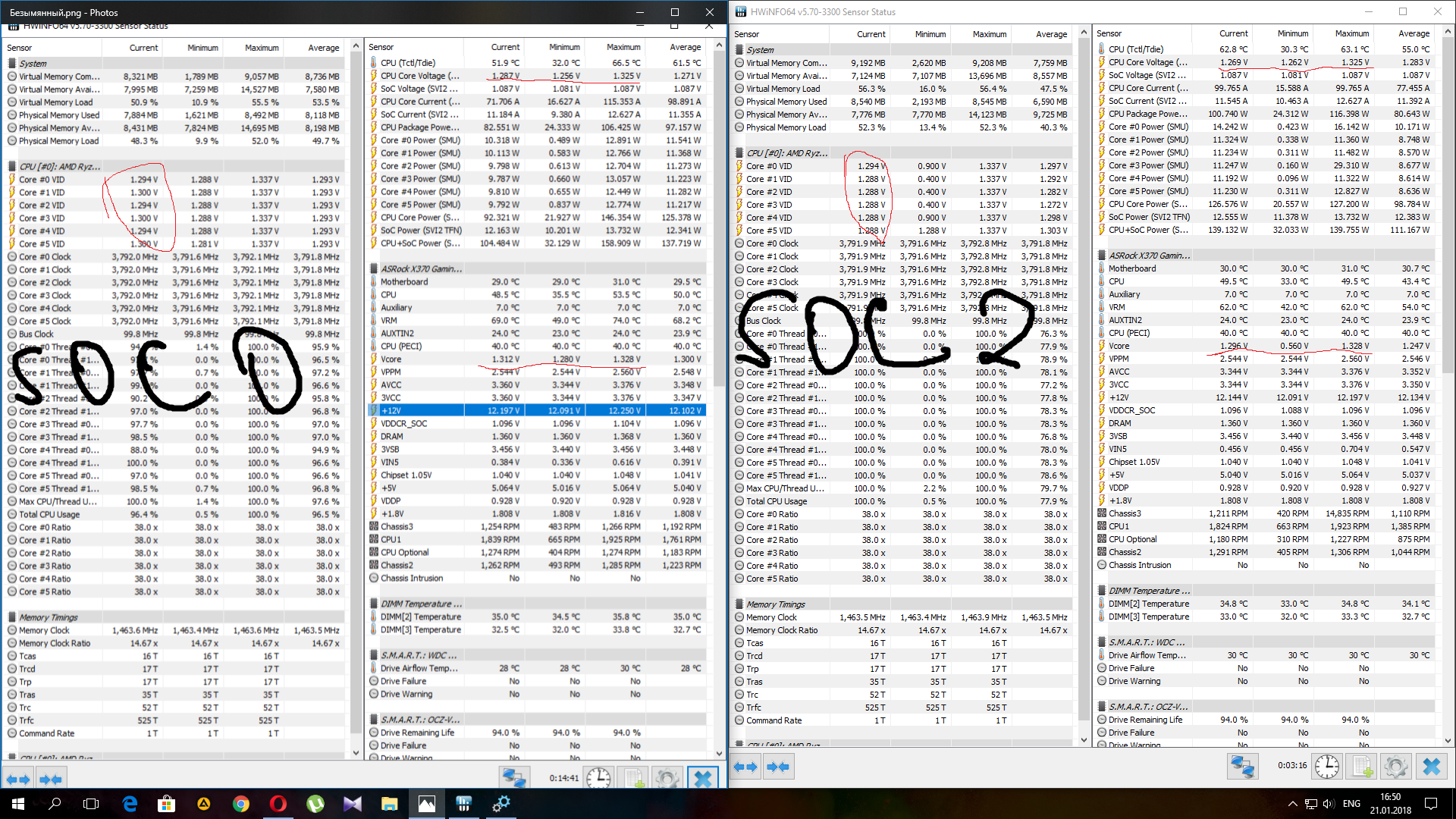 Перенёс 1 вентиль сверху вперёд вниз, где жд + приколхозил ещё 1 попавшийся под руку в отсек дисководов (итого 3 на вдув, 2 на выдув). И ещё поставил offset на -0,00625 (было +0,025). Пока что больше ничего не делал. Итого, 3 прогона - 70,8 C (было 74 за 1). Вроде уже лучше, но, думаю можно ещё понизить напр. +чё-нить придумать с термопастой мб. Кстати, сейчас стоит 1,38 вольт на оперативке 3066. Поставил столько сразу после того, как с трудом запускалась на 2933@1,35. Сейчас она работает стабильно, стоит ли снижать напряжение до возможного минимума, или пусть на 1,38 работает? там в лучшем случае где-то 1,36 +- получится.