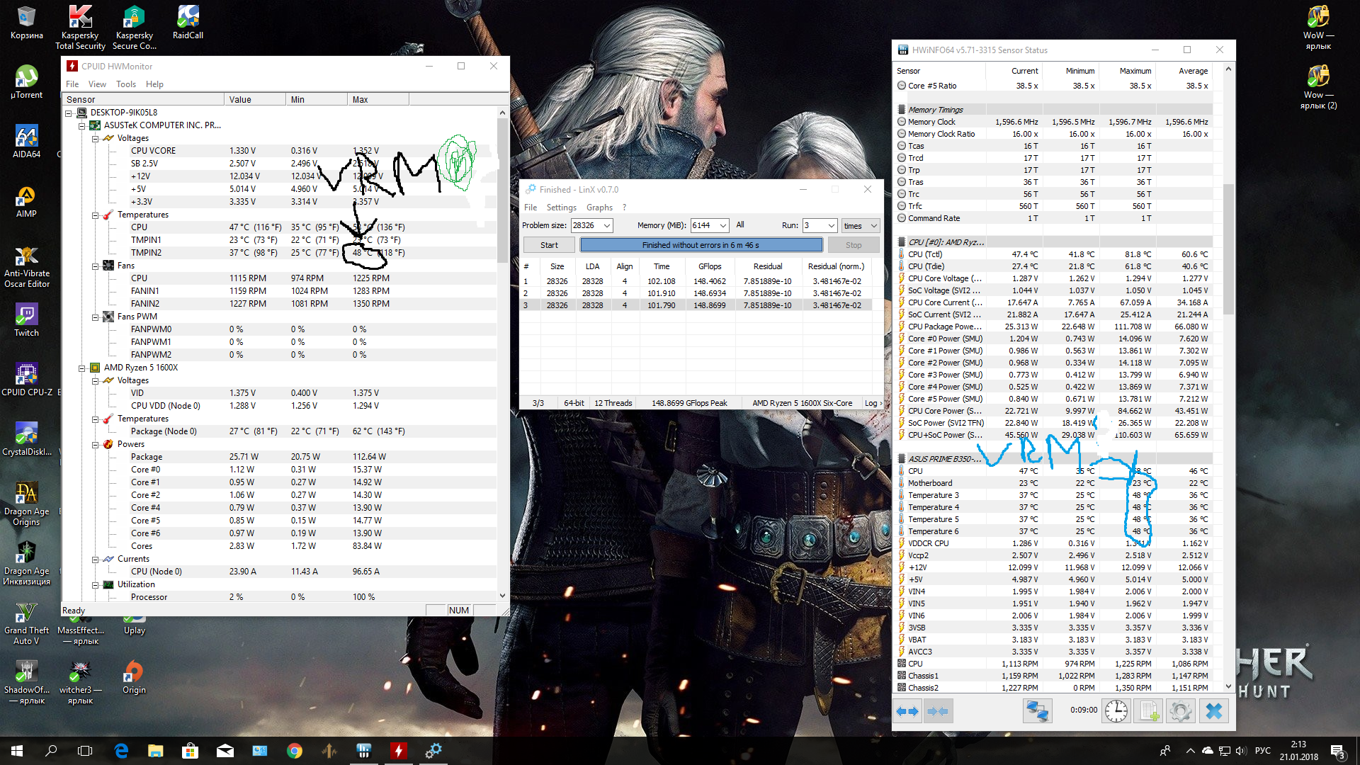 Какое по факту у меня напряжение на процессоре, а то смотрю все по разному его смотрят? И нормальные ли температуры для данного напряжения (Mugen 5) Если снижать напряжение офсетом в низ хоть на шаг, линкс виснет на 5-7 прогоне.
