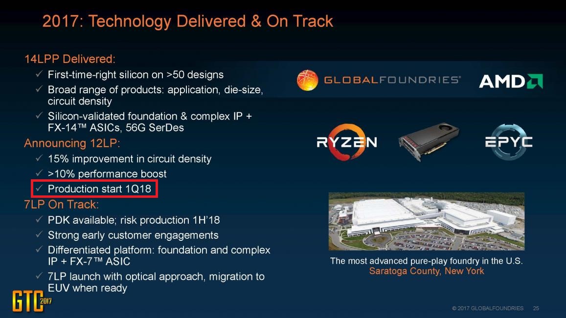 Учитывая, заявление AMD о том, что разработка ZEN 2 полностью завершена, и дело за готовностью производителя чипов (GlobalFoundries) и её 7нм техпроцесса, можно ориентироваться на GlobalFoundries по характеристикам и срокам готовности 7нм техпроцесса...