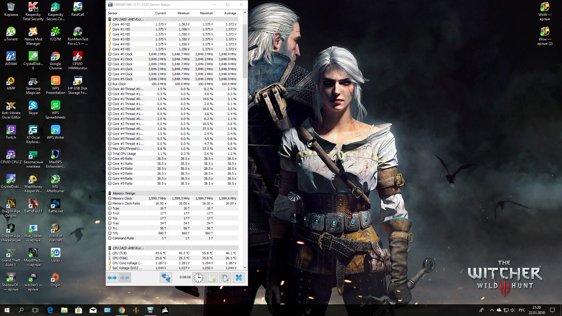 - Обычно поставляется в коробке с системой охлаждения Wraith Spire RGB (это круглая конструкция из целого куска алюминия с медной вставкой-испарительной камерой в основании и вентилятором с кольцом разноцветной подсветки, крепится к задней пластине разъёма AM4 четырьмя винтами). - Штатно имеет базовую частоту 3.0ГГц, частоту 3.2ГГц (технология Turbo Boost) при обычной многопоточной нагрузке (Blender n-cores render) и 3.75ГГц (технологии Precision Boost и XFR) при однопоточной нагрузке (Cinebench R15 single core). - Штатное напряжение питания 1.1875В. Может возрастать до 1.3В на отдельных ядрах во время работы Precision Boost и XFR. - Очень энергоэффективный, требования к СО (TDP) - всего 65W. Энергопотребление порядка 10Вт в простое и 85Вт в обычной многопоточной нагрузке (Blender n-cores render).