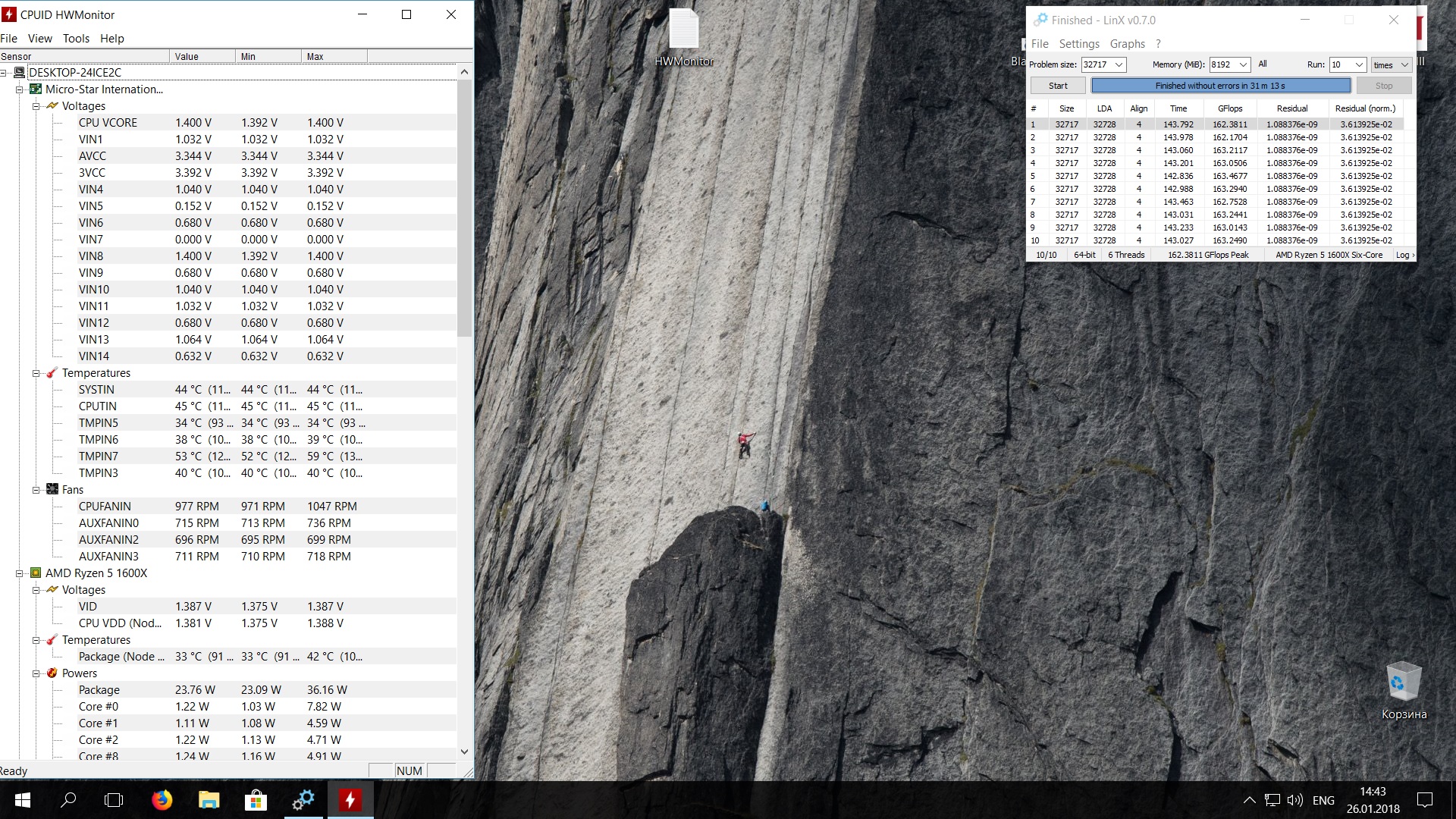Процессор Ryzen Threadripper 1900X; материнка ASRock X399 Taichi. В биосе выставлены только частота 4000 и напряжение 1,325 v (LLC 3)... всё остальное по-умолчанию.