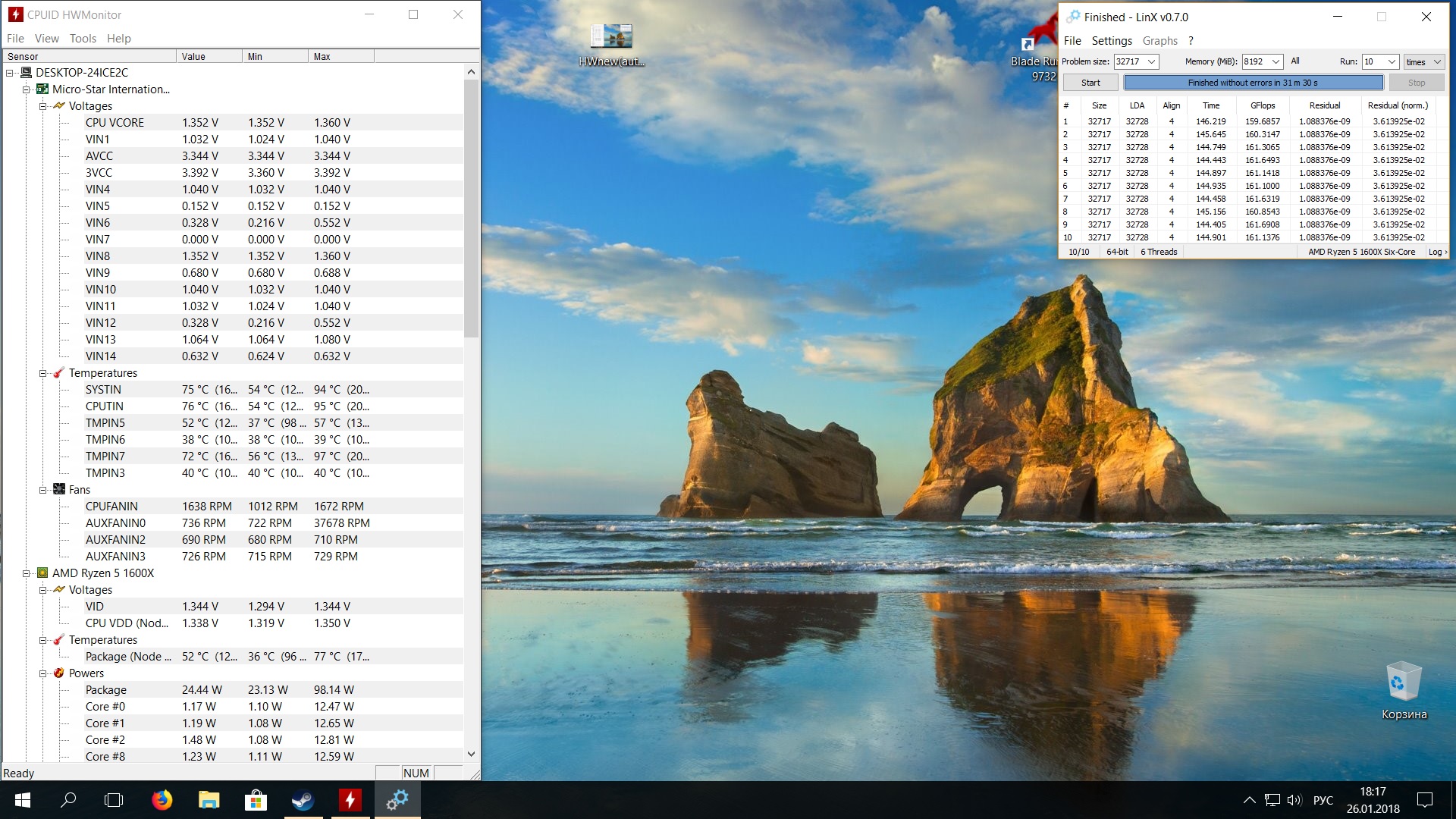 KenPath Воот, уже лучше. Макс температура 77°С. Правда непонятно так, может это секундный всплеск. Лучше мониторить, еще раз пишу, через HWiNFO64, ПКМ на строку Tdie, ShowGraph, будет в виде графика. Понижай по шагу и делай опять тест Linx. Если проходит четко, опять понижай и опять тест... и так ты, постепенно придешь к минимальному напряжению для 3800МГц
