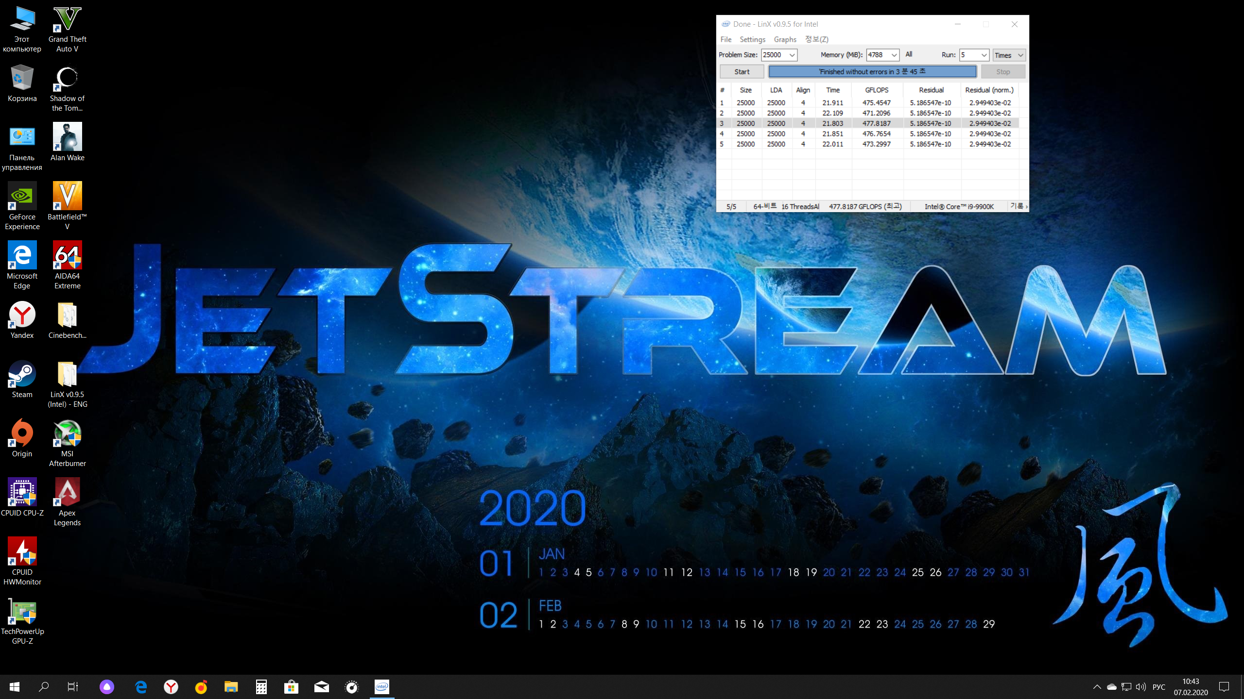 LinX должен быть настроен следующим образом: Задаете режим 32 либо 64 бит, объем задачи = 25000 (не меньше 25000), количество проходов = 10 (не меньше 10).
