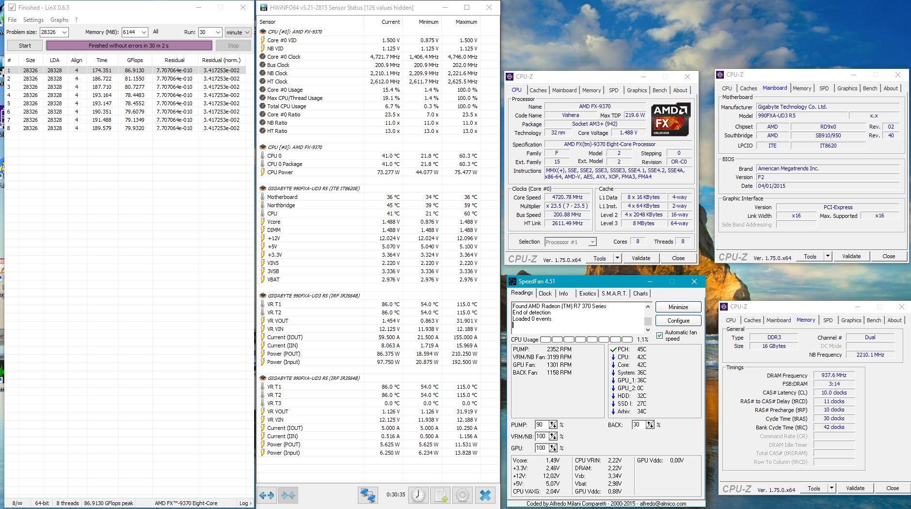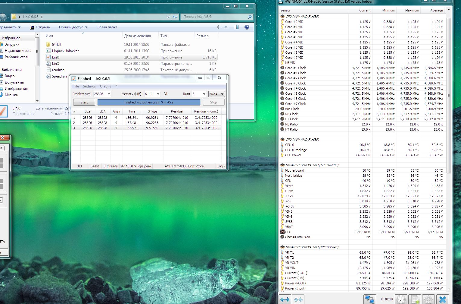 нормально это, когда в нагрузке (в линксе) разница между синим и красным будет не более одного шага, а без нагрузки - равна: http://uploads.ru/UVa2o.pngтогда и флопсы нормальные будут[/quote] CPB отключил. Без него температуры меньше прыгают и снизились. Сохранялки отключил. Vcore изменялось от 1,452 до 1,488 В. Потребление системника на розетке макс. 401 Ватт.