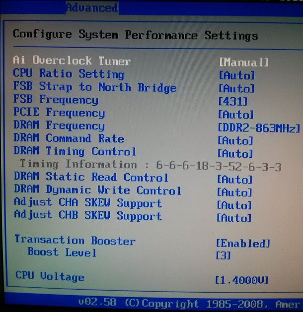 Помогите пожалуйста с настройками биоса в Asus P5KC под Xeon X5460 и DDR2 800 Kingstone. Вот на фотках видно что настроил и что получилось, так вот, что сделал не так и что нужно поменять в настройках? Со спойлерами не дружу, извиняюсь за изображения без спойлеров