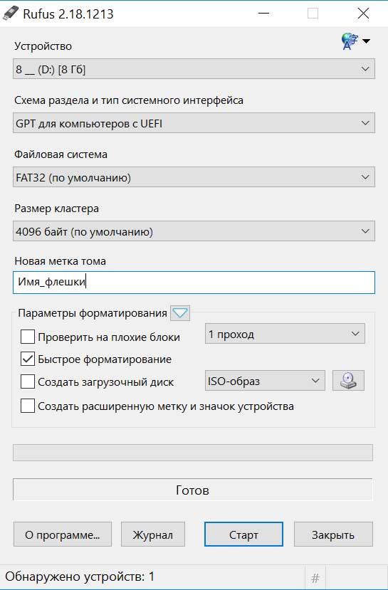 3. Настраиваем Rufus как у меня на картинке и жмем Старт.
