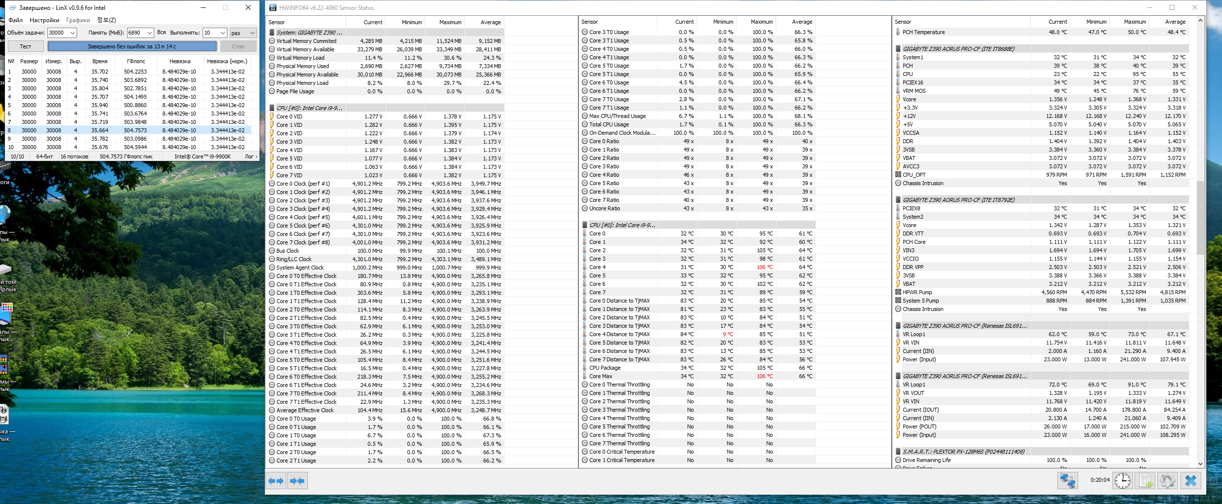 многовато 94 градусов по отдельным ядрам при частоте 4.9ггц и 1.28 вольта, дальнейшее поднятие напряжение система охлаждение не выдержит и это один из топовых кулеров . я не представляю чем охлаждают 9900к в линексе при 5ггц и 1.3 вольта и выше
