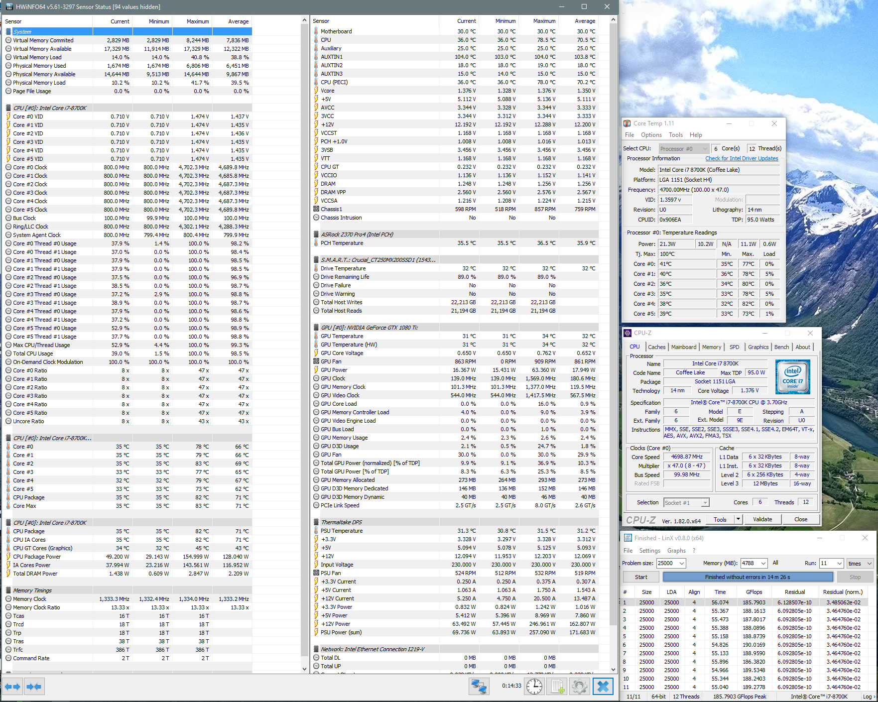 Century\ Тест то прошел, но разгон у тебя и 4700 к сожалению не удался, т.к у тебя частота проседает в нагрузке, смысл разгона такого? его нет. Тебе надо поднять в биосе LLC. И когда после теста смотри в проге HWinfo в графе "минимум" частота должна быть такая же как и в графе "максимум" ну там мб разница погрешности 10-15 мгц. А у тебя там 800 мгц всего, а разгон подразумевает чтобы частоты были стабильны в максимальной нагрузке без просадок.