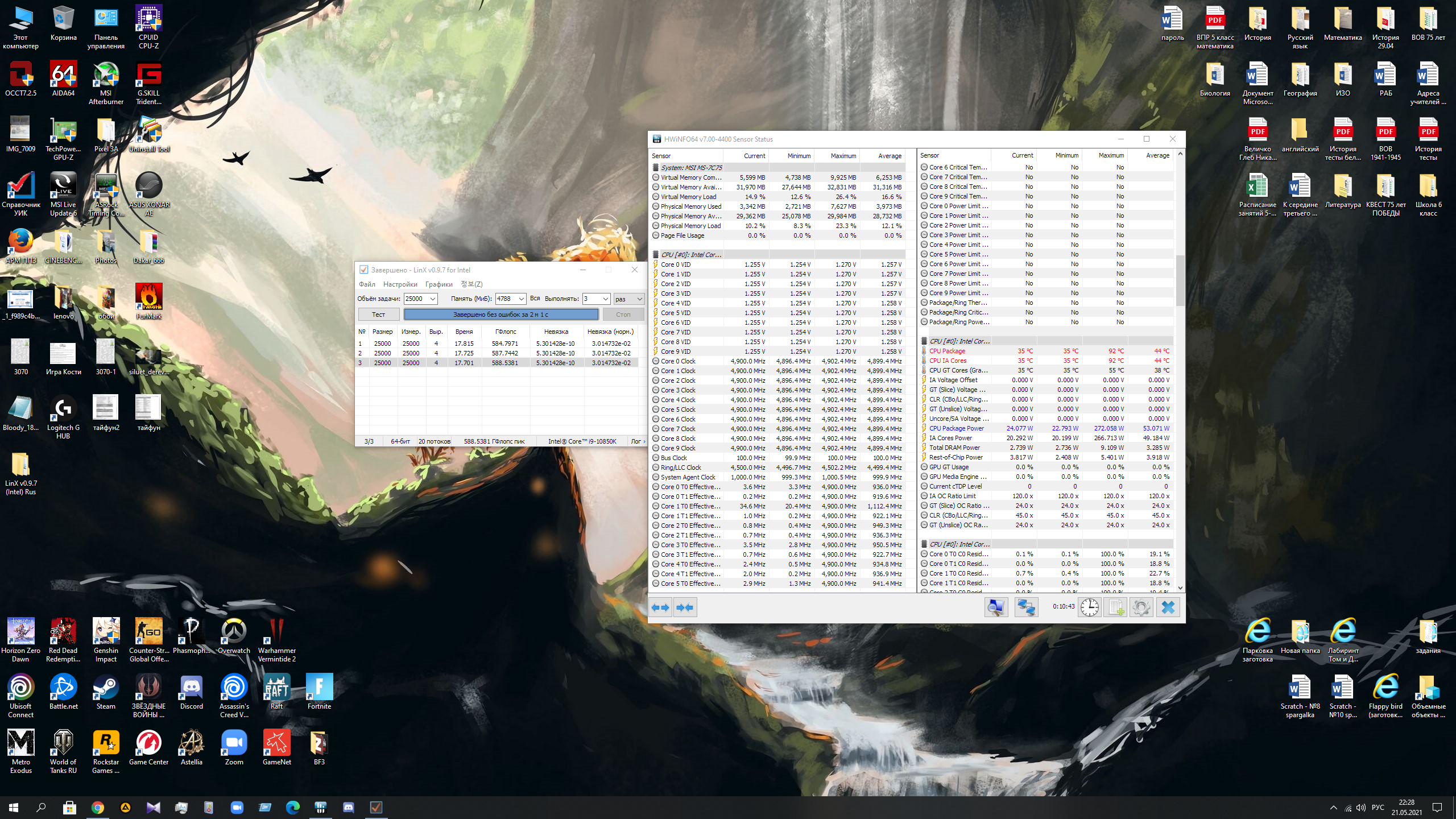 Добавлено спустя 32 минуты 41 секунду: Просто прикола ради, и видя удачные 10850 в ветке по ддр4, решил снизить ИО/СА. В итоге линкс проходит даже 1,25/1,26, но ТМ5 сразу дает ошибки. 1,27/1,27 пока стабильны в ТМ5, но еще жду окончания теста. Линкс короткими бросками вот: