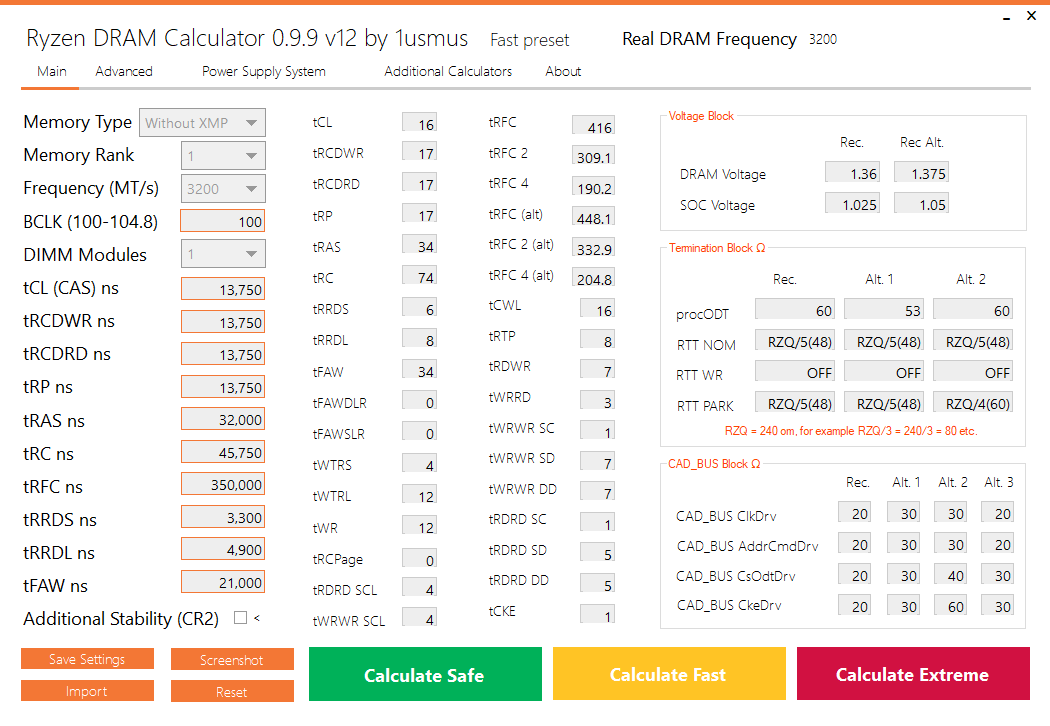 Память: по калькулятору Safe выставил все тайминги кроме основных, основные взял из Fast + ProcODT 53.