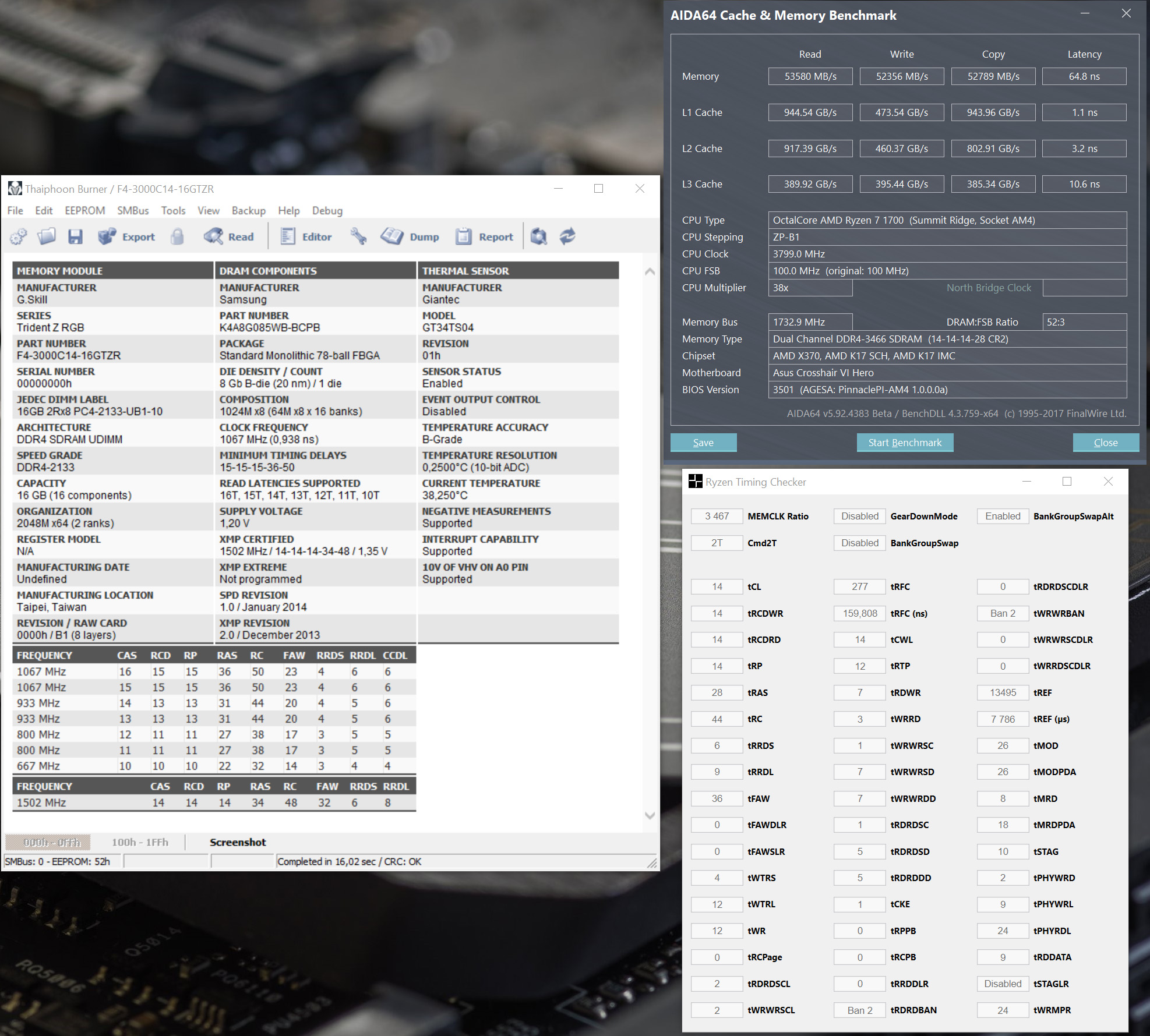 - Обычно поставляется в небольшой коробке без СО. - Штатно имеет базовую частоту 3.4ГГц, частоту 3.5ГГц (технология Turbo Boost) при обычной многопоточной нагрузке (Blender n-cores render) и 3.9ГГц (технологии Precision Boost и XFR) при однопоточной нагрузке (Cinebench R15 single core). - Штатное напряжение питания 1.35В. Может возрастать до 1.4В на отдельных ядрах во время работы Precision Boost и XFR. - Энергоэффективность средняя, требования к СО (TDP) - 95W. Энергопотребление порядка 13Вт в простое и 120Вт в обычной многопоточной нагрузке (Blender n-cores render). - По сравнению с R7 1700 имеет увеличенный промежуток XFR (100МГц вместо 50МГц), а также увеличенные технологией SenseMI показатели температуры на 20 градусов (например, 90 при реальных 70).