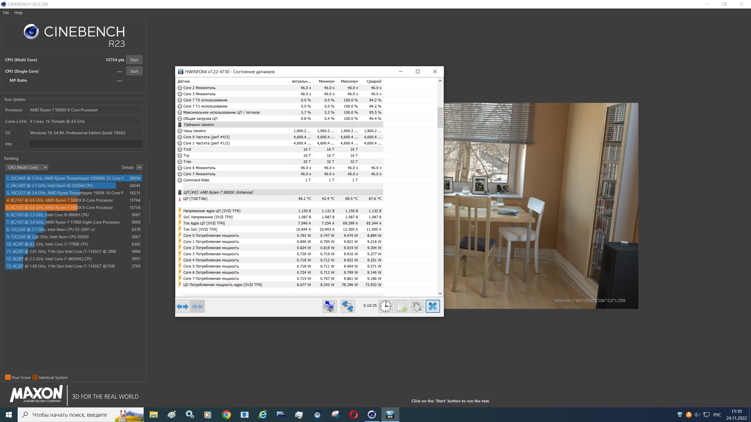 Вот! Теперь хотя бы понятно, почему 5800x3d стОит дороже, - мой 5600х с расширенным лимитом PPT до 108 W не набирает и 12000 попугаев (какие-то жалкие 11900 с хвостиком).