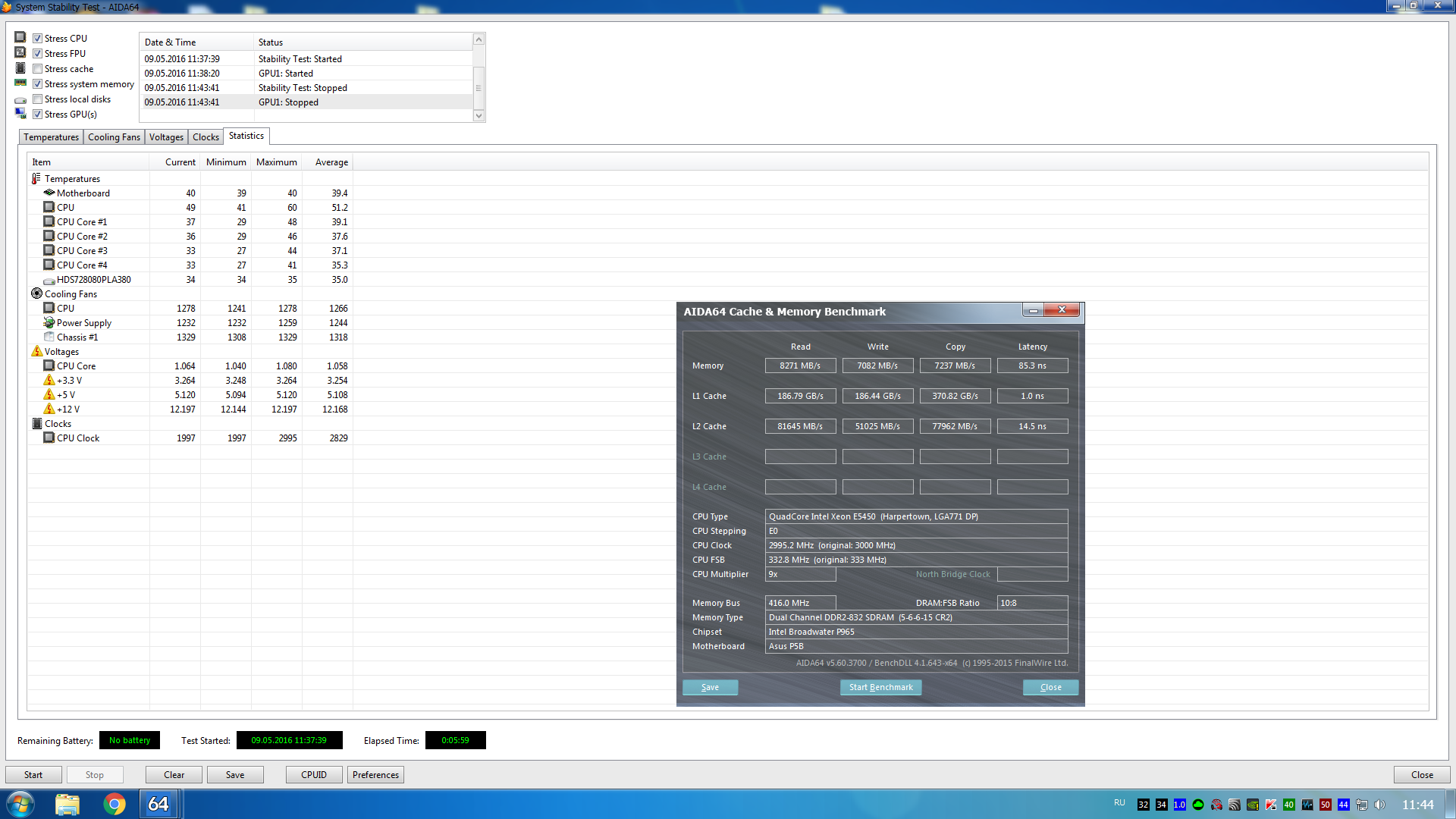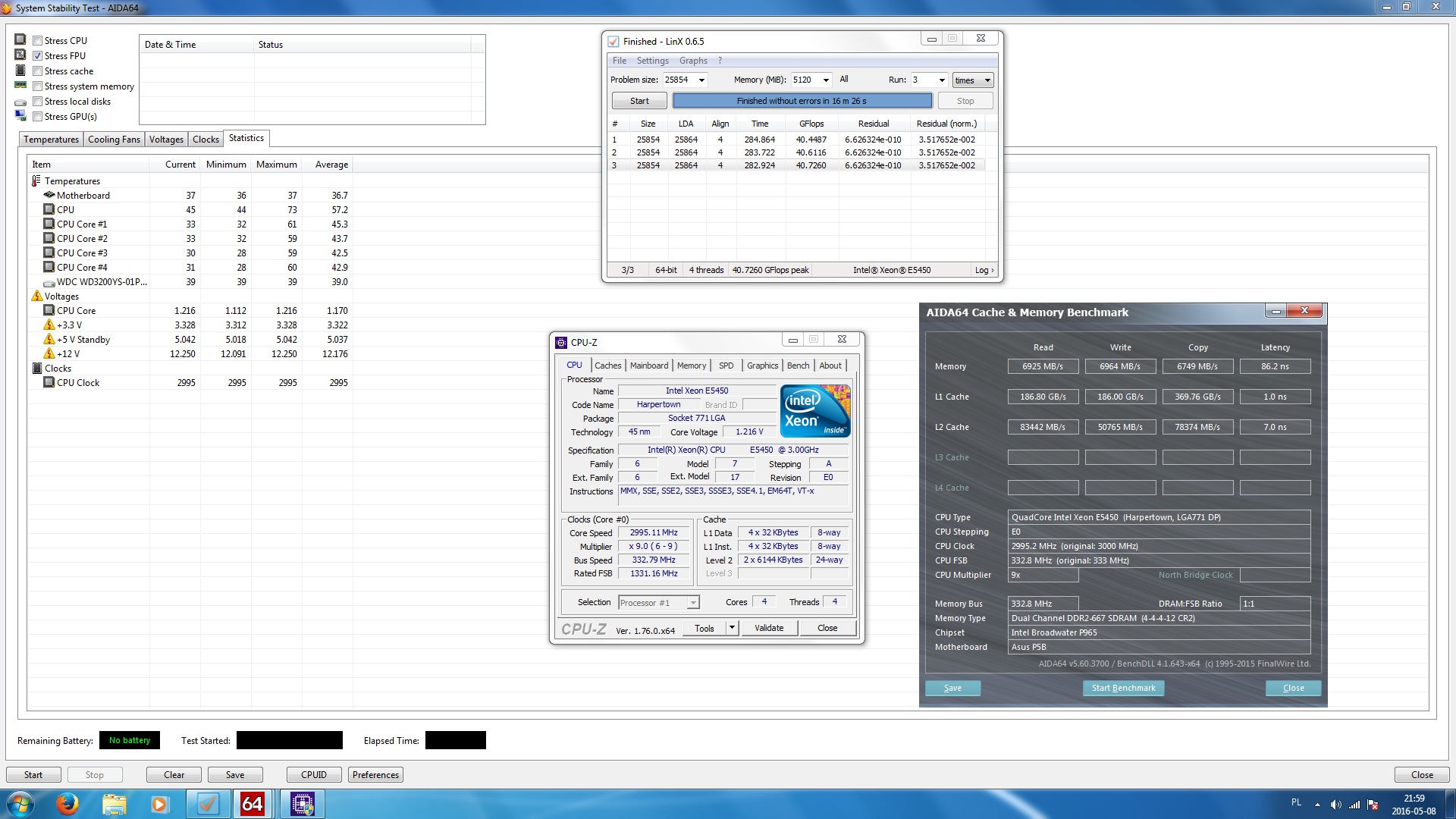 Всем привет. Давно як вам не заглядывал. Сегодня хочу поделится информацией о работе E5450 на древней мамке Asus P5B (обычная, без всяких букв), на которой друг собирал комп еще 10 лет назад. Начнем с того что читал в этой теме, много информации о том что на этой мамке с максимальной шиной 1066 запустить шину 1333 составляет много труда. Я запустил без всяких проблем. О разгоне на этой мамке можно даже не мечтать, потому что Е5450 в стоке это уже "разгон" для нее. Память не удается запустить на 800 Мгц, даже при даунлоке процессора. В общем память 4 низкопрофильные планки Kingston 2G-UDIMM 2GB DDR2-800 555-18 работают только на частоте 667 Мгц но с таймингами 444-12. Несколько дней тестирования - система стабильна.