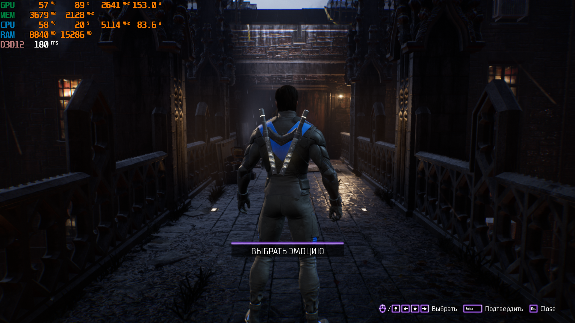 можно сами тестировали Gotham Knights всех желающих добавлю в таблицу начало игры,настройки 1080р ультра сделать скин с мониторингом так выглядит скрин