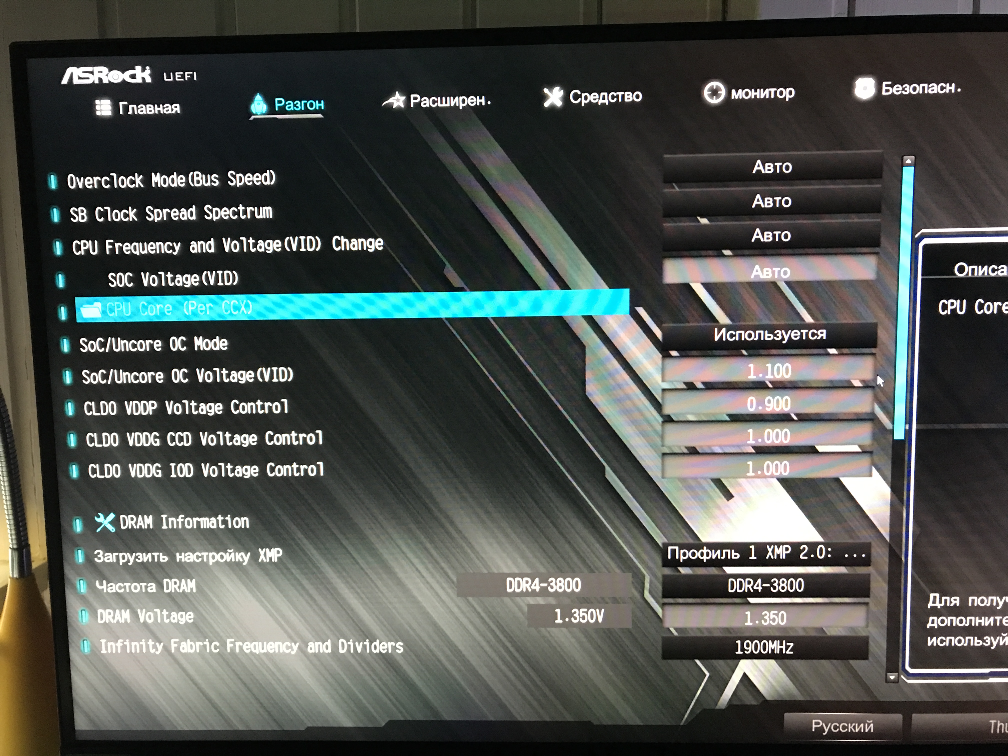 Господа, нужна хелпа, не могу понять где косяк. Дано: Asrock B450 Pro 4, Ryzen 7 5700X, Crucial Ballistix 2x8gb Что сделано: 1) Разгон памяти до 3800 mhz (настройки те же что были и на 3600), проверка TestMem5 usmus v3, 8 циклов 2) Для Ryzen выставлен PBO, лимиты по Мат. Плате, +200 к бусту. Scalar 2x, CO не трогал.