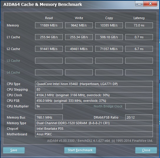 Что-то Xeon не вывозит DDR3 на ASUS P5KC, скорость памяти совсем не радует, в разгоне до 1440 даже не приближается к стоковым результатам в обзоре http://greentechreviews.ru/2012/11/14/t ... 9-2x-4-gb/, может я что-то делаю не так!?