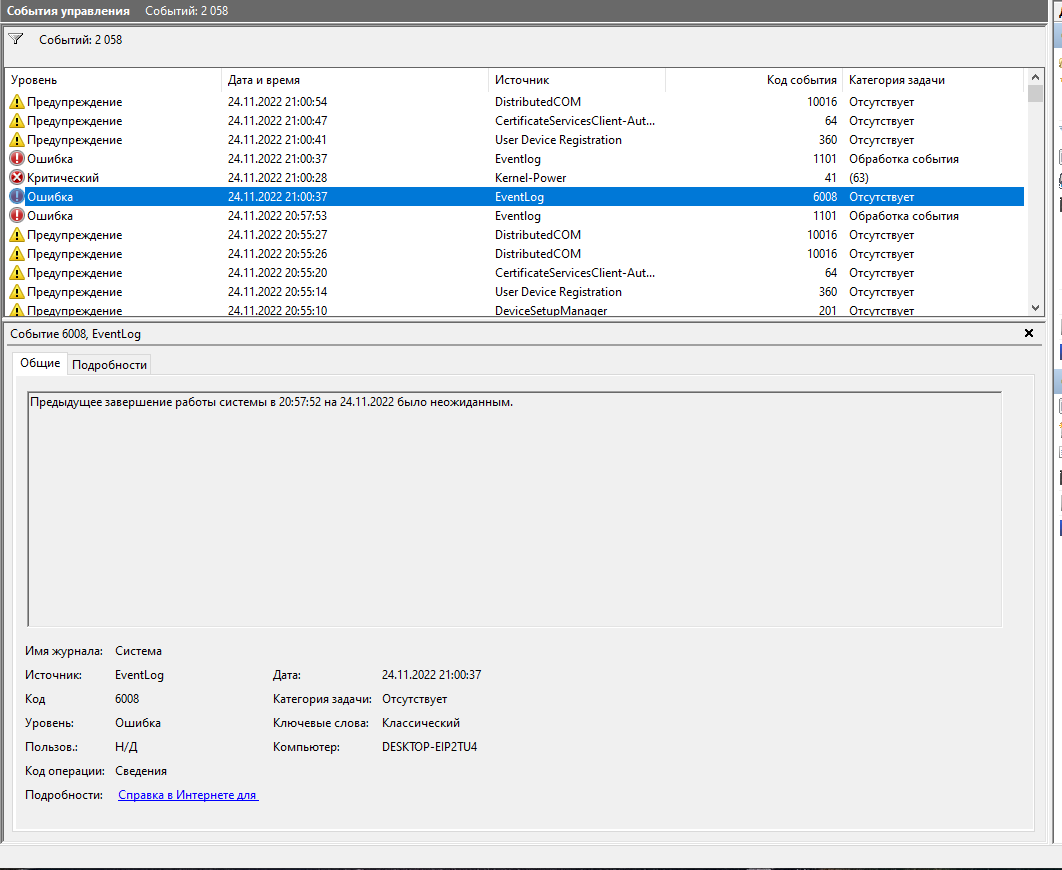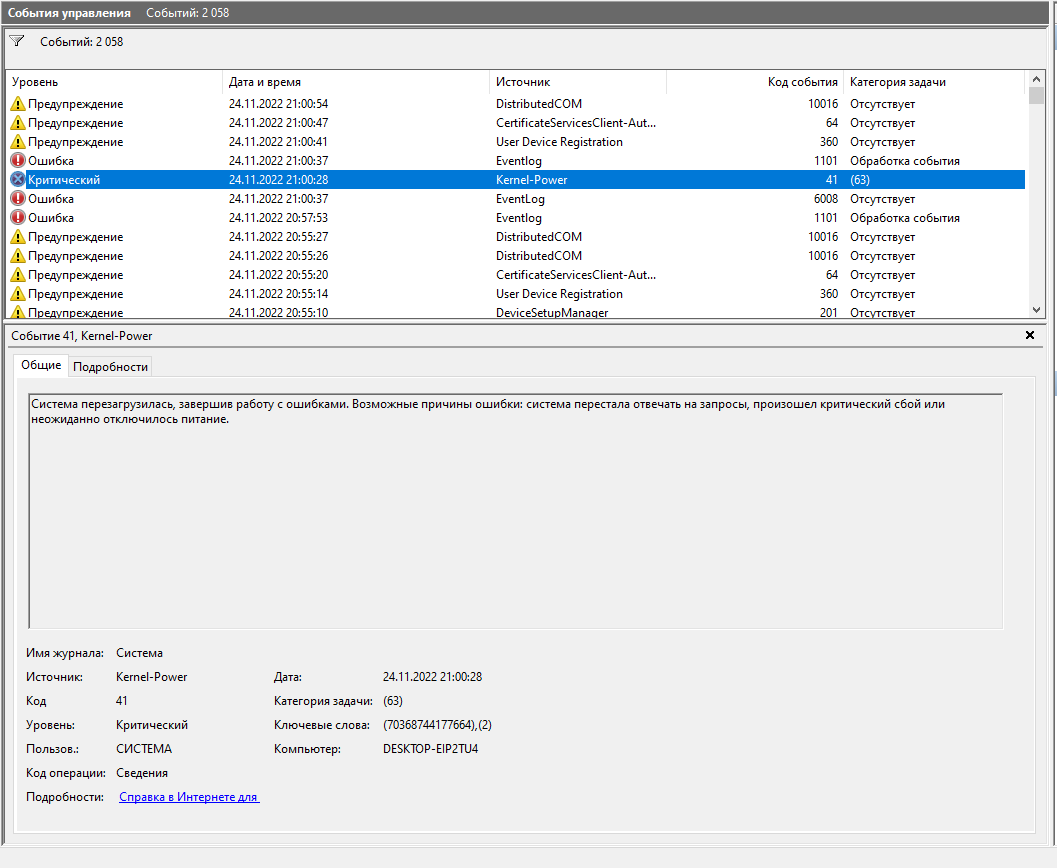 как вчера родились... Запустить командную строку от имени администратора, Прописываем команду sfc /scannow и нажимаем Enter. Смотрим журнал винды, какие сообщения после краша?