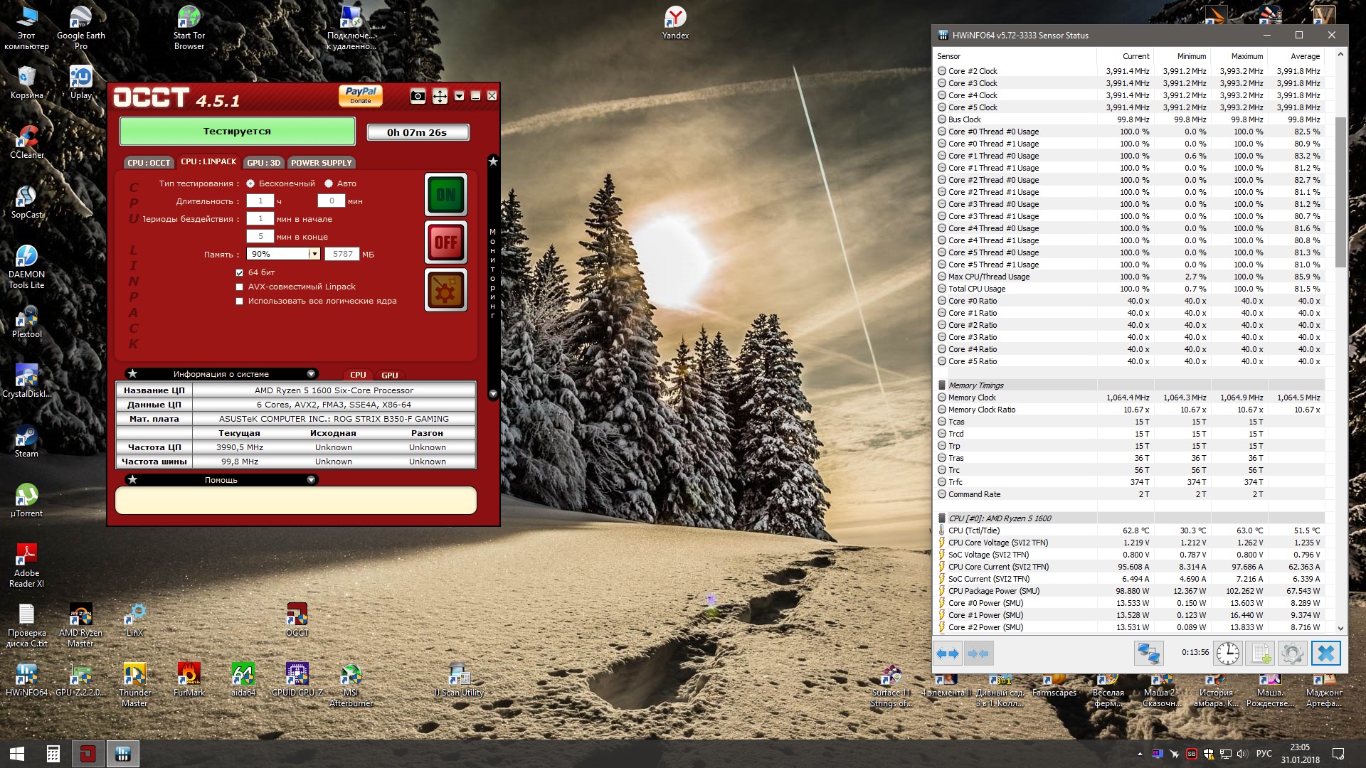 я щас скачал осст последний,венда зависла нафиг через полторы минуты. сбросил -100мгц,сбросил напругу на 1 уровень ниже. вроде стабильно. 161 ватт макс.
