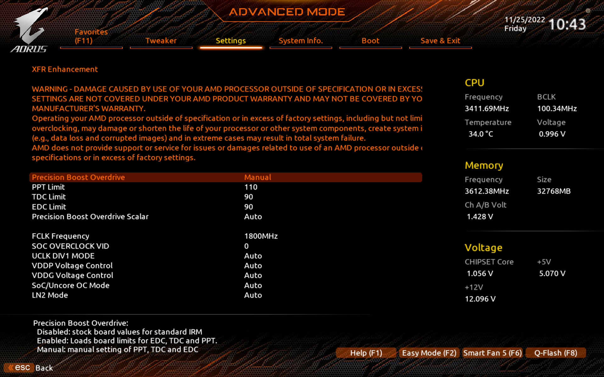 При этом методе игнорируется лимит EDC, лимит TDC настраивается исходя из возможностей VRM, какой ток в амперах материнская плата может максимально выдать не перегревая VRM, лимит PPT это максимальное потребление процессора, особенно актуально если система охлаждения очень инертная. 5900X/5950X упрутся в температурный лимит в 90°С на самом горячем CCD, 5600X/5800X в 95°С, эти значения можно уменьшить при помощи настройки Platform Thermal Throttle Limit. Последние 5°С до этого лимита дают приличные пенальти к бусту.