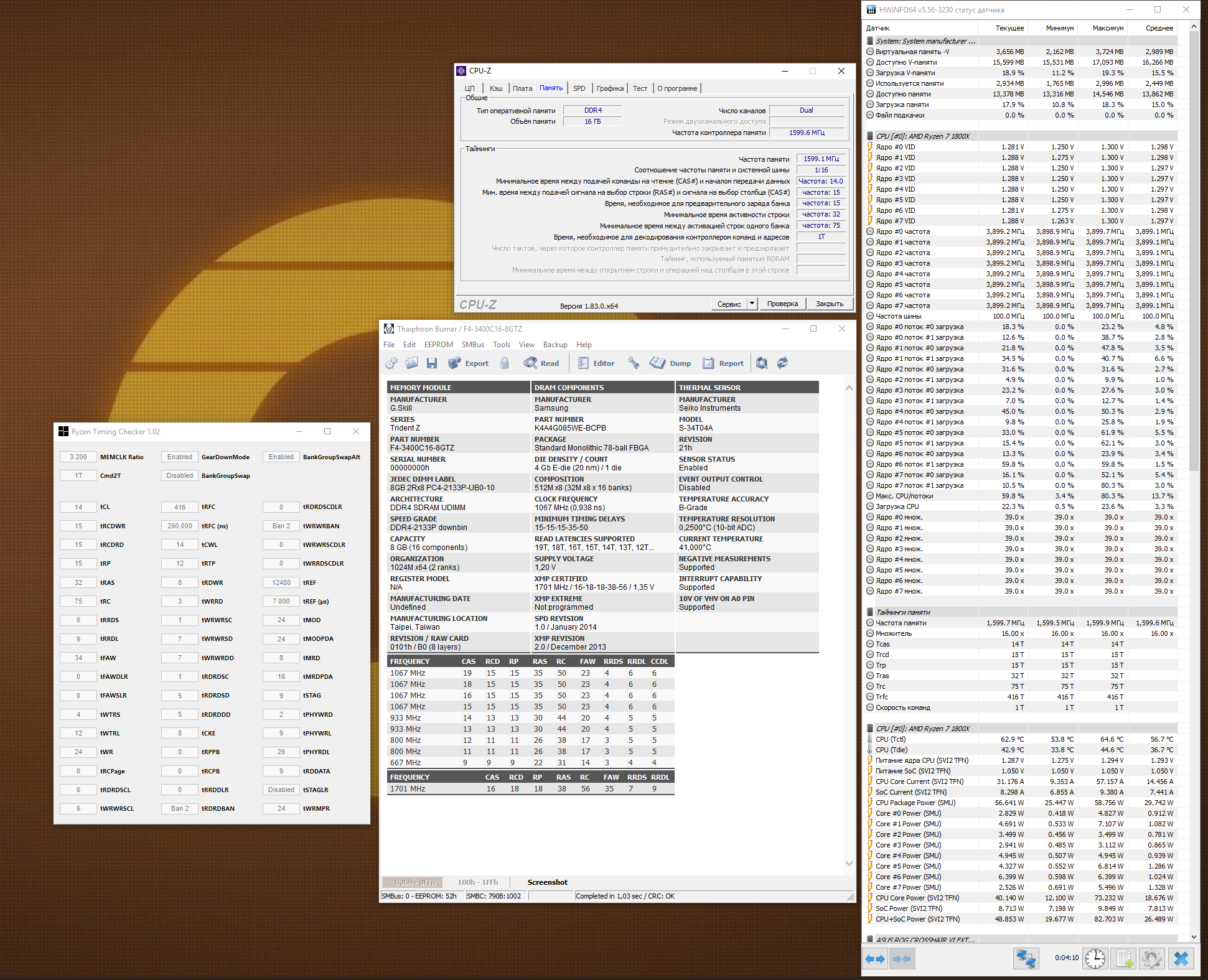 TepakoT с новым биосом, как я понял, чем ниже прок, тем лучше идёт. 43.3 смог взять на 3333, но требуется повышение вольтажа для этого, да и смысла нет, разница между 43.3 и 48, у меня на данном разгоне, нулевая.