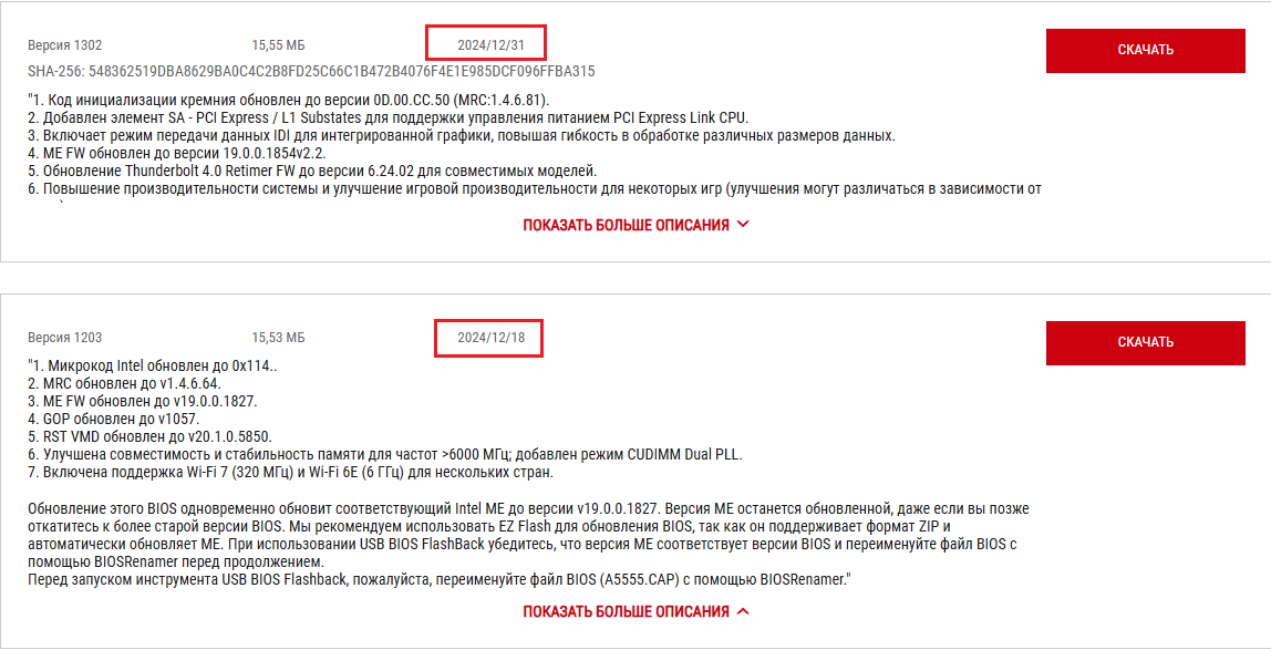 shuler37 Смотрим официальные слайды теста-фикса от Интела. Конфигурация (страница 19): Motherboard: ASUS ROG MAXIMUS Hero Z890; BIOS: 1302 Заходим на сайт этой матплаты. Когда биос вышел?