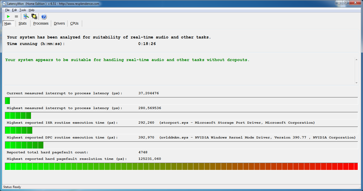 Добрый вечер. Прочитал сегодня на последних страницах о проблемах с фризами у людей, у меня похожая ситуация. В ПУБГе частые фризы, в WOT, War Thunder, в CSGO (в самой игре все нормально, но при открытии меню зависает на 1-1.5с) и даже в старенькой Titan Quest они замечаются. Сначала грешил на жесткий, но установив на ССД ничего не изменилось, прочел здесь пост о фризах и лагах, почти все пункты выполнил, ничего не помогло. В сообщениях выше прочитал совет об использовании программы LatencyMon. С ней прогнал TQ, получились вот такие результаты, помогите пожалуйста их расшифровать Конфигурация: R7 1700 + MSI B350 Gaming Pro Carbon + GTX1070 TI + 16 GB 2400, система стоковая.