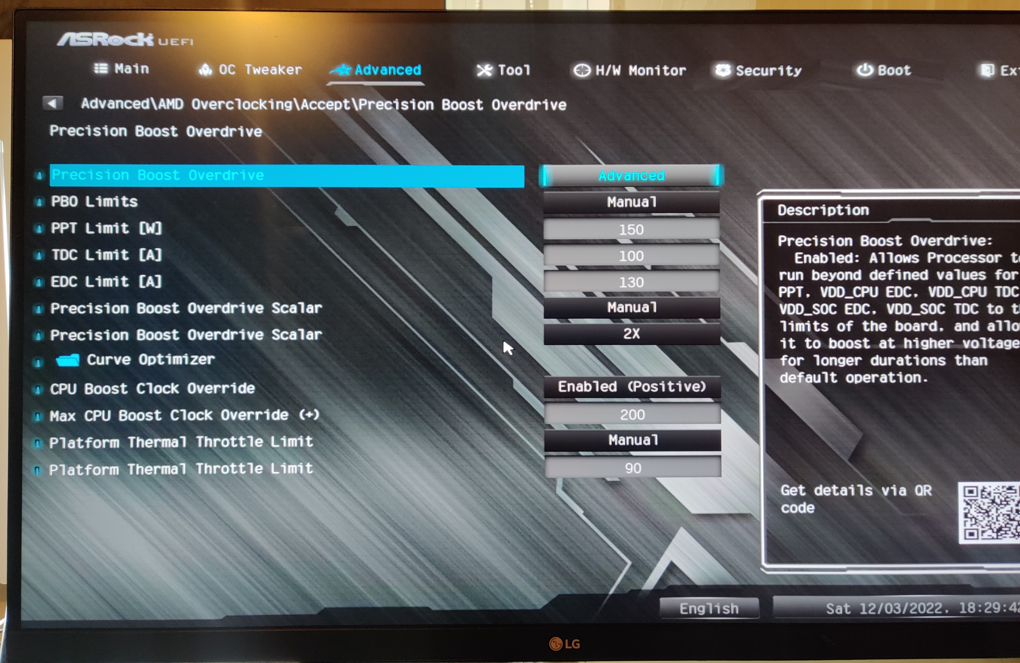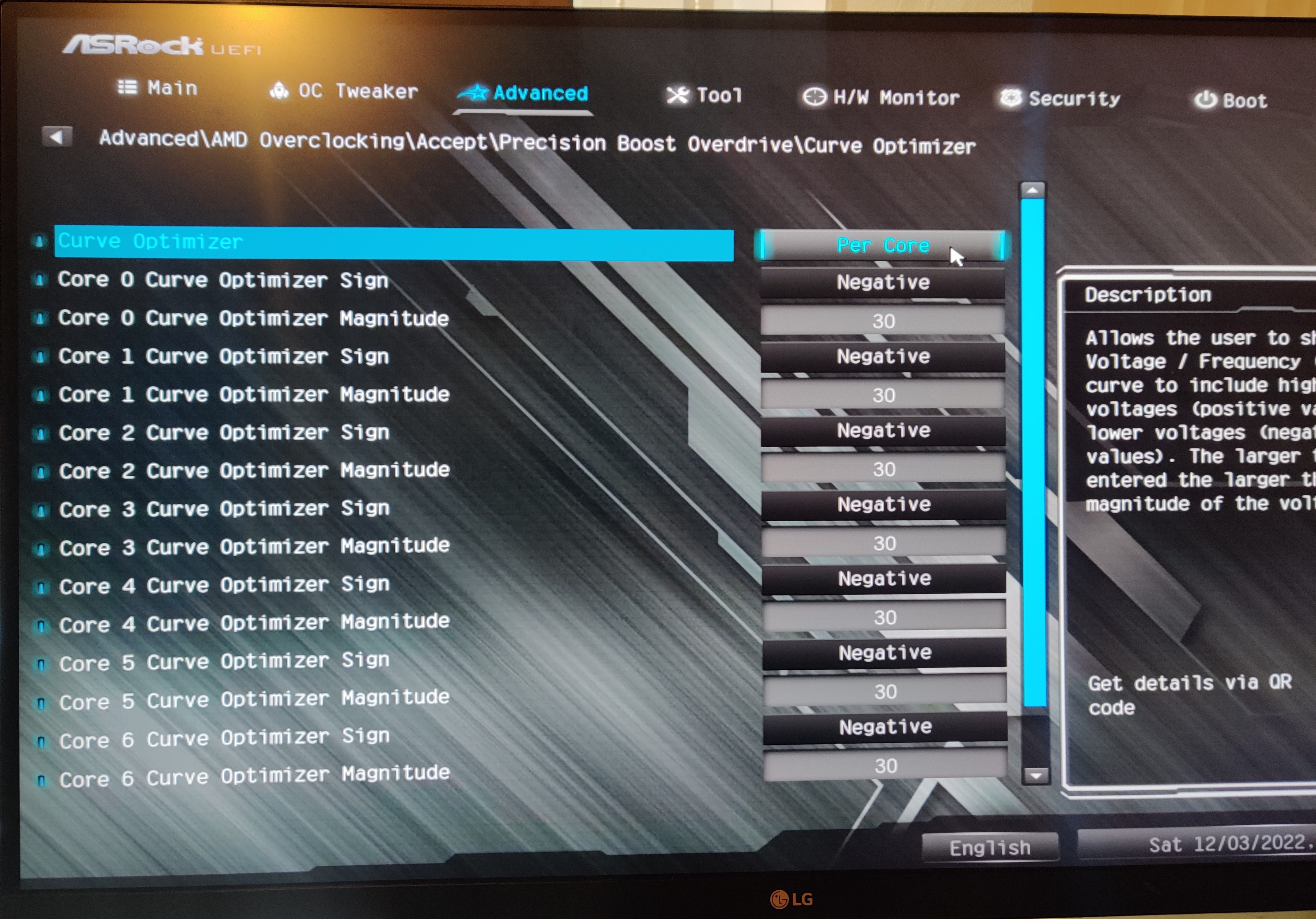 Лично я выставил сразу лимиты по максимуму что может VRM материнки и сколько может переварить охлаждение. Precision Boost Overdrive Scalar чем больше значение, тем позже и менее агрессивно процессор сбрасывает частоты после того как пропала нагрузка. Выставил на максимум. Что касается Load-Line Calibration то для всего кроме VCore выставляю в самое агрессивные значения, хотя и для VCore тоже. Precision Boost берёт во внимание показания именно мониторинга, а не запрашиваемое значение. Мониторинг материнской платы читается Precision Boost`ом через такой протокол как SVI2 TFN. Технология заключается в следующем: 1)выставляем Желаемый VCore Offset, если выставляем его в сторону увеличения, то малопоточная производительность будет выше, если в сторону уменьшения то многопоточная производительность будет выше. Под каждую настройку VCore Offset надо подправлять значения Curve Optimizer, 2)сначала для всех ядер уменьшаем Curve Optimizer, 3)запускаем скрипт, упомянутый выше, повторяем шаг номер 2, пока ни начнёт вываливаться ошибка на одном или нескольких ядрах и откатываемся на один шаг 4)запускаем после этого Cinebench R20, с большой вероятностью система просто перезагрузится, это по большей части лечится добавлением CPU PLL напряжения с 1,8V, но не превышая 1,9V, хотя от чрезмерного напряжения PLL может начаться обратный эффект и стабильность пропадёт, 5)далее начинаем настраивать Curve Optimizer для каждого ядра отдельно и проверяем стабильность как в шагах 3-4.