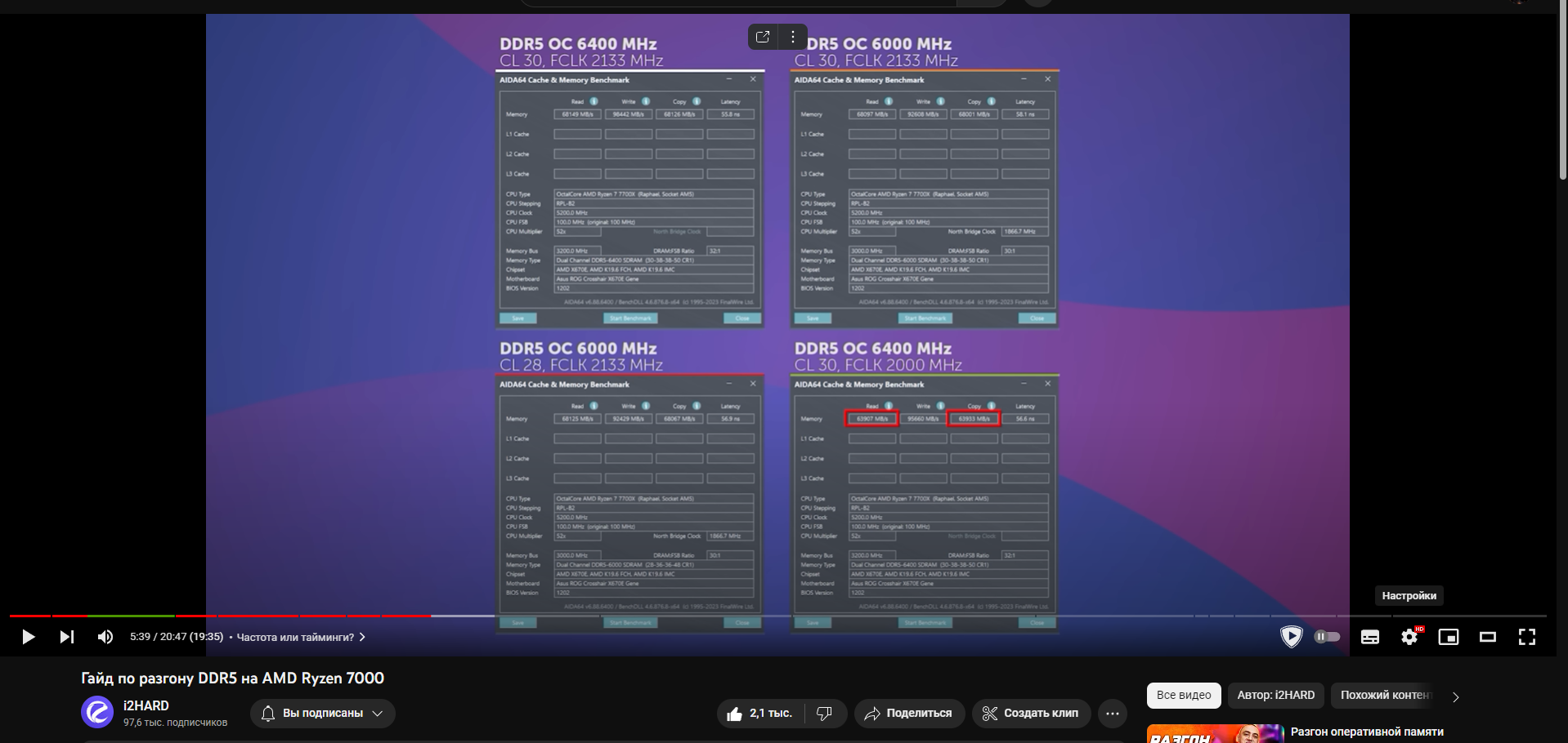 Где в 2 раза то выше?) В аиде скорости чтения и копирования выросли аж на невероятные 5000 MB/s относительно 6400. А запись и на 6400 100к. В ns проигрыш. 26-28 берут любые A die Hynix за 100-130 баксов.