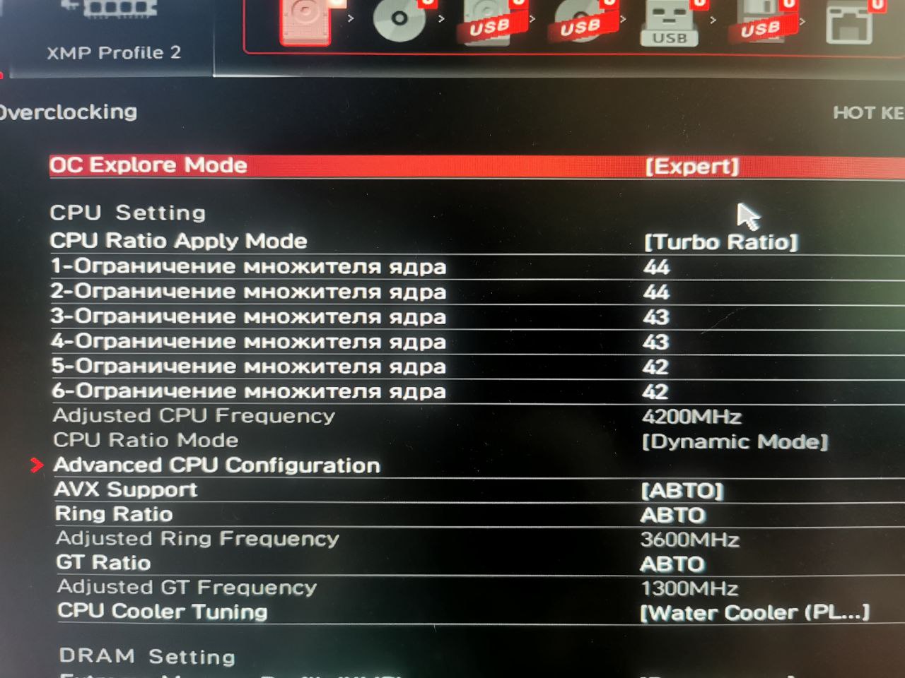Добрый день, подскажите пожалуйста с настройкой 11400, раньше каким-то образом делал так что в играх постоянно одни ядра держали 4400, другие 4300, теперь не могу это сделать, вроде все настройки в биосе перетыкал, но ничего не меняется, все ядра чисто 4200. Мать msi b560. На скринах вроде как и стоит так, как я хотел, но по факту эти частоты ядра не держат.