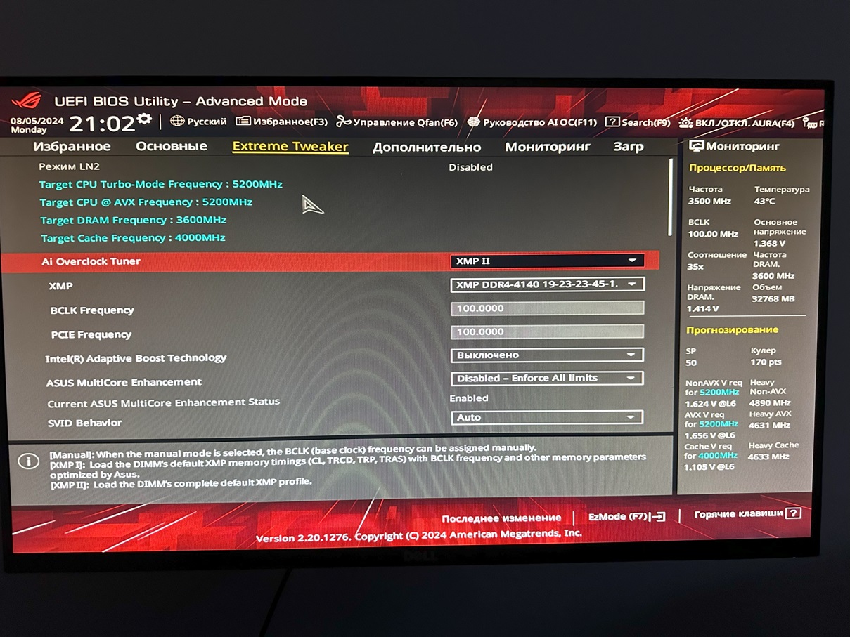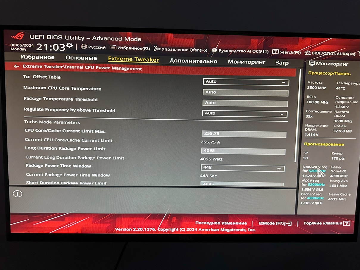 Система: 11900 kf + asus z490 xii hero (bios ver 3001)