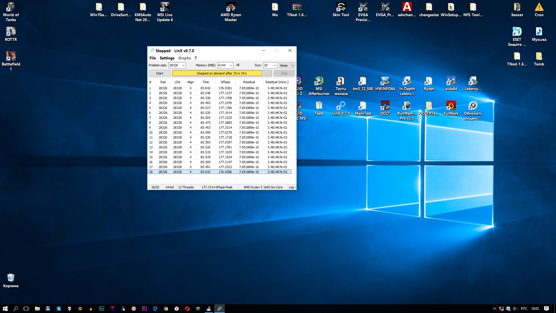 - Обычно поставляется в коробке с системой охлаждения Wraith Spire RGB (это круглая конструкция из целого куска алюминия с медной вставкой-испарительной камерой в основании и вентилятором с кольцом разноцветной подсветки, крепится к задней пластине разъёма AM4 четырьмя винтами). - Штатно имеет базовую частоту 3.0ГГц, частоту 3.2ГГц (технология Turbo Boost) при обычной многопоточной нагрузке (Blender n-cores render) и 3.75ГГц (технологии Precision Boost и XFR) при однопоточной нагрузке (Cinebench R15 single core). - Штатное напряжение питания 1.1875В. Может возрастать до 1.3В на отдельных ядрах во время работы Precision Boost и XFR. - Очень энергоэффективный, требования к СО (TDP) - всего 65W. Энергопотребление порядка 10Вт в простое и 85Вт в обычной многопоточной нагрузке (Blender n-cores render).