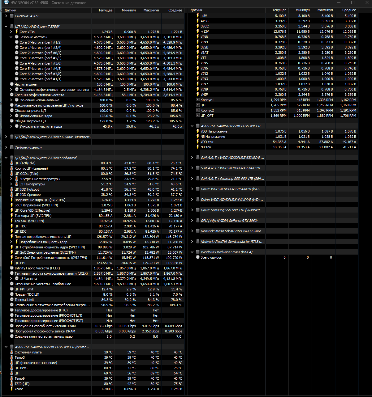 Делюсь болью и страданиями! В начале 2021 года купил я 5950X и материнку ASUS X570-I всё настроил спустя пару месяцев, радовался. Спустя пол года начались приколы, за неделю разок проскакивали ошибки WHEA Logger, по одной, потом через пару месяцев вообще критически ошибки WHEA Logger начали появляться и ребуты, причём под малыми нагрузками при просмотре видео или ютубчика, или при свёрнутой игре на паузе. После перепаковки водоблока на видюхе остались термопрокладки Gelid GP Ultimate, разобрал материнку, поменял термопрокладки на VRM, на обратной стороне VRM и на чипсете и вуаля, всё как рукой сняло. Напряжения CLDO VDDP, VDDG IOD, VDDG CCD получилось снизить до старых пределов. Какая связь между WHEA и охлаждением материнки я ХЗ. Но изначально начало помогать тупо обдув вокруг сокета 120мм вентилем. Теперь и без вентиля работает. Посмотреть бы на материнку в тепловизор.