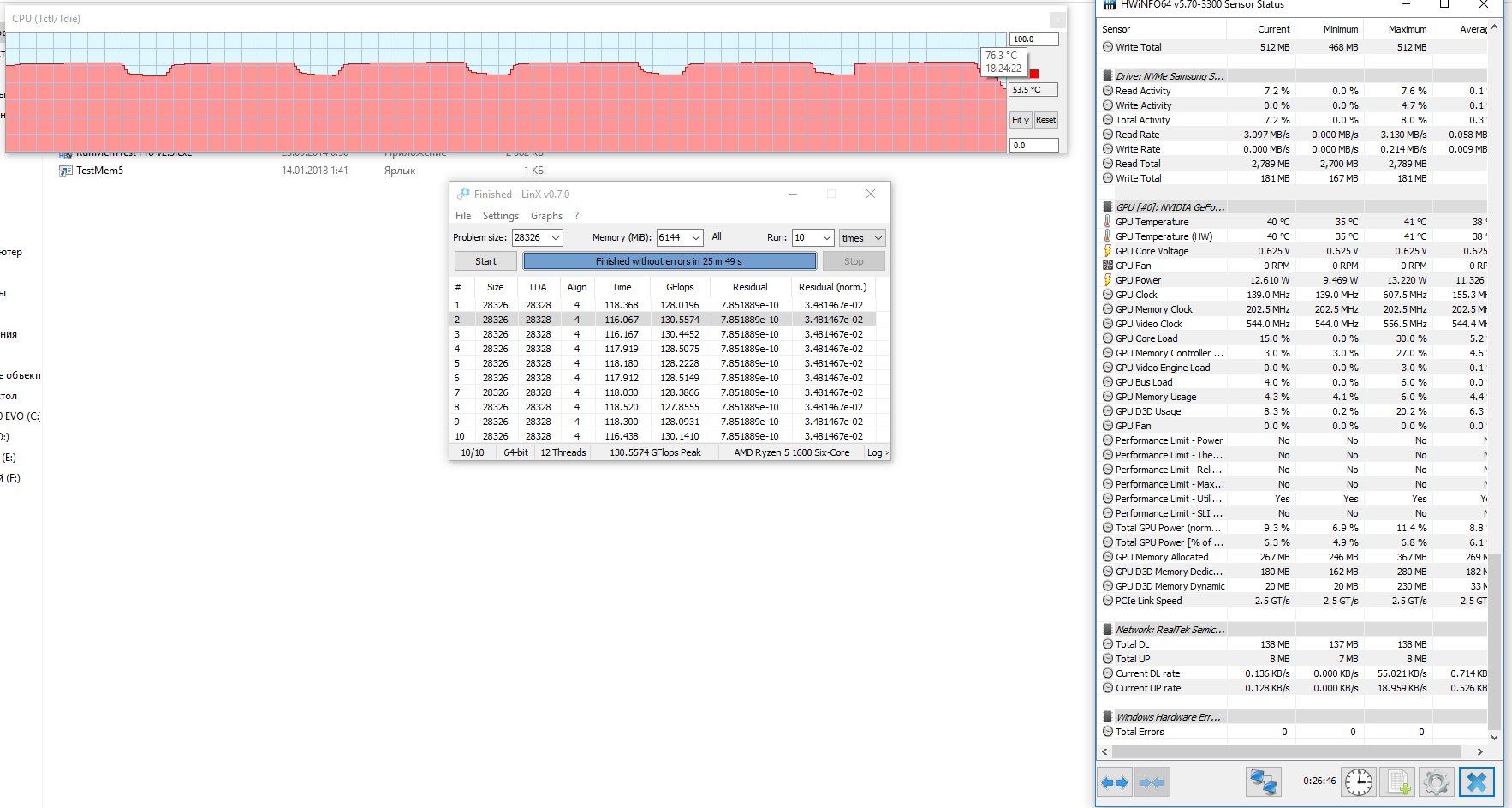 Результаты теста LinX (Gflops немного разнится из-за использования пк во время теста) Rashid10